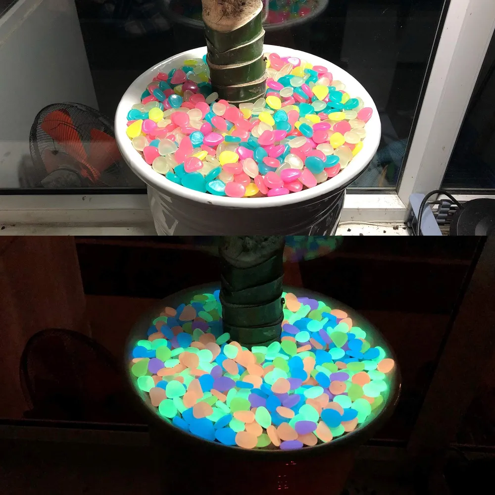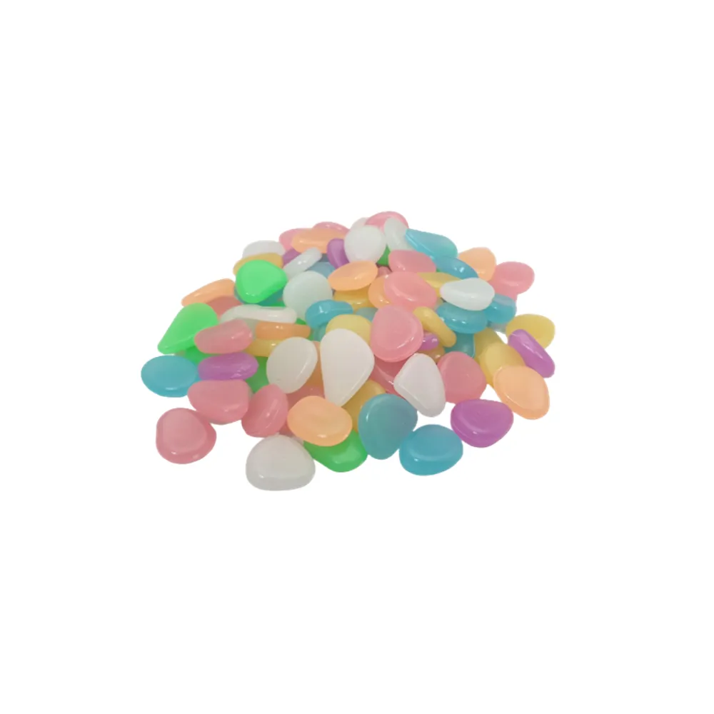 Pietricelele sunt confectionate din acril si au dimensiuni diferite. Acestea pot fi folosite pentru amenajarea gradinii, curtii sau chiar in interiorul locuintei. Puteti realiza diverse decoratiuni care vor avea un impact vizual inedit datorita efectului glow fosforescent al pietricelelor.