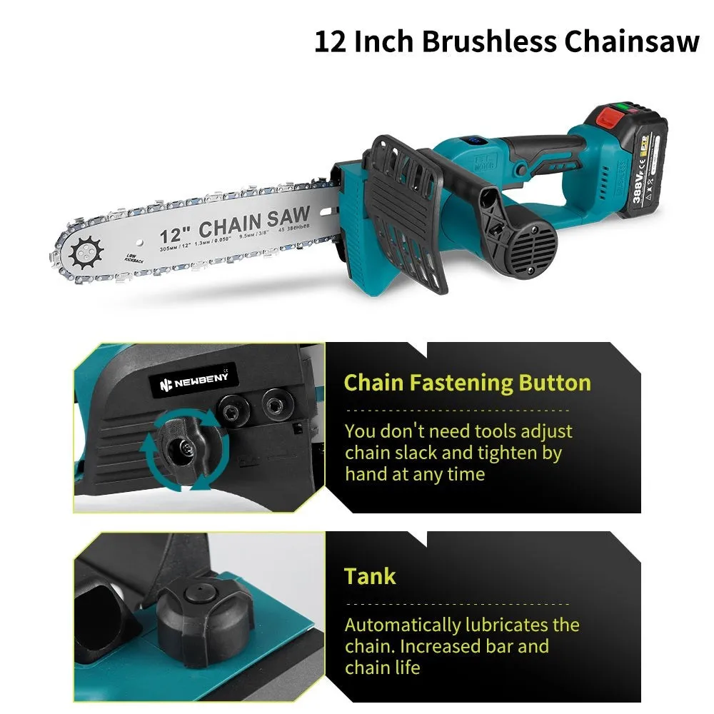 Drujbă electrică 14 inch, DASGUT cu 1 acumulatori Li-Ion, 48V, ungere lant, display, 07