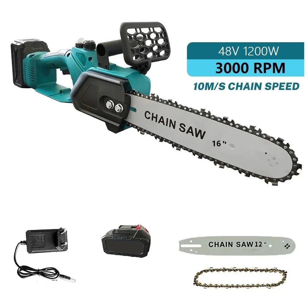 Drujba electrică DASGUT este un echipament de tăiere puternic și eficient, ideal pentru utilizarea în lucrări de tăiere a lemnului, fie pentru tăierea copacilor, fie pentru procesarea lemnului de foc. Alimentată de doi acumulatori litiu-ion de 48V, această drujbă oferă performanțe ridicate și o autonomie de lucru semnificativă, fiind o soluție ecologică și practică față de motoarele cu combustie internă.
