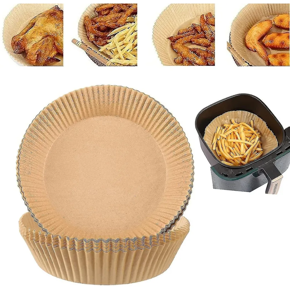 - Forma de hartie pentru friteura cu aer cu mai multe utilizari Aceste foi pentru friteuza cu aer din hartie de pergament pot fi aplicate pentru servirea alimentelor, aburirea, tigaia, cuptorul cu microunde, prajirea, prajirea, friteuza cu aer. Potrivite pentru coacere, camping, petrecere de vara.