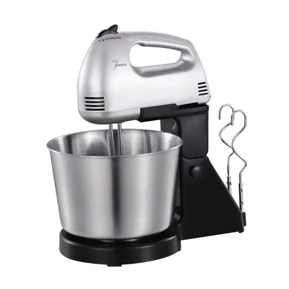 Transformă gătitul și coacerea într-o experiență mai ușoară și mai curată cu acest mixer cu bol. Spre deosebire de mixerul obișnuit de mână, acesta vine cu o bază stabilă și un bol rotativ de 2 litri, ideal pentru prepararea aluaturilor, a frișcăi sau a albușurilor de ou.