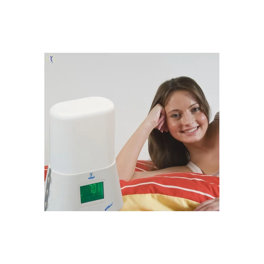 Culoarea afișajului ușor de citit poate fi comutată în verde sau portocaliu. Iluminarea de fundal poate fi redusă și oprită. Dimensiunile ceasului cu alarmă luminos sunt 25 cm x, 17 cm x și 12 cm.