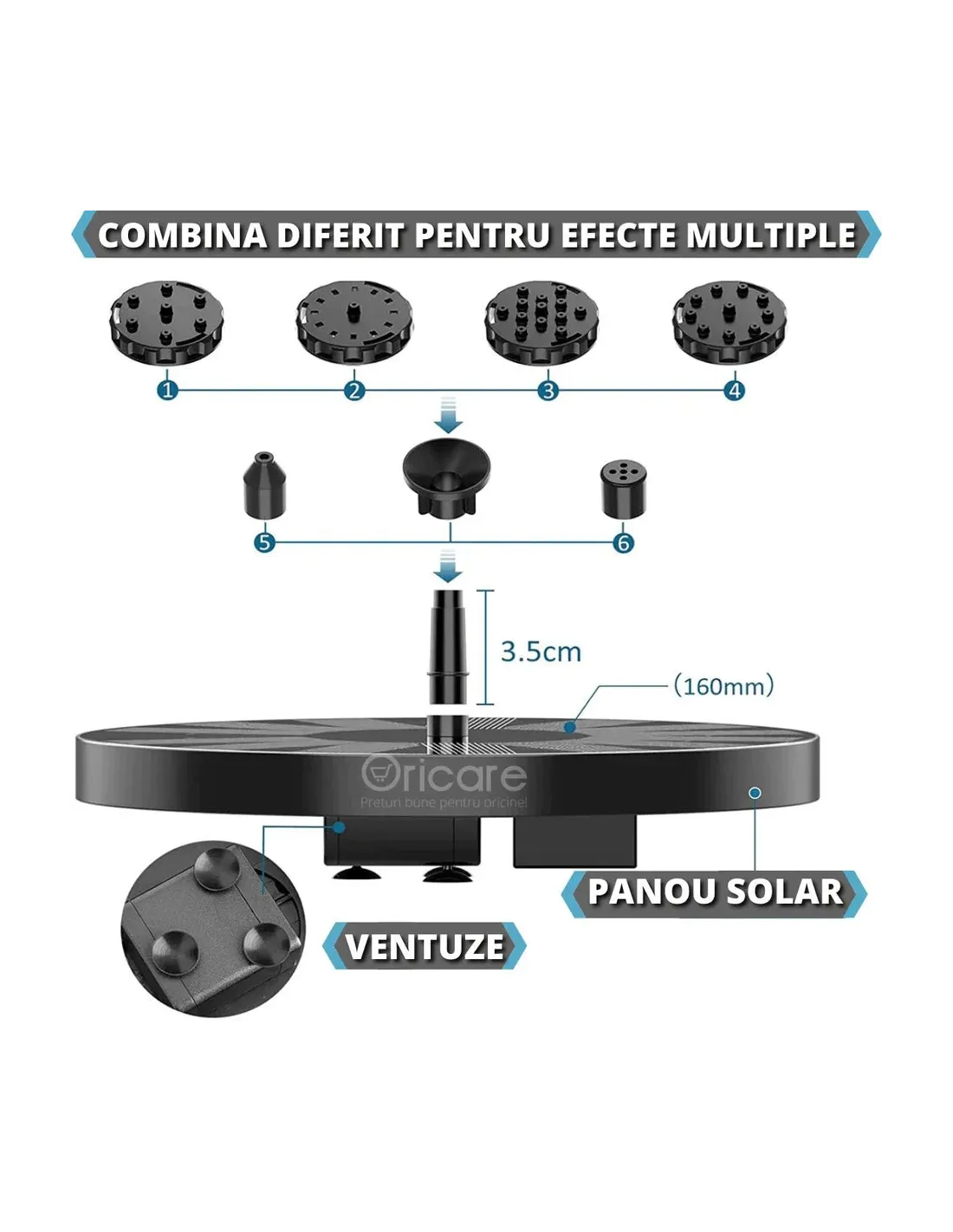 Fantana arteziana solara, 13x4 cm, 4 duze, inaltime jet 40cm