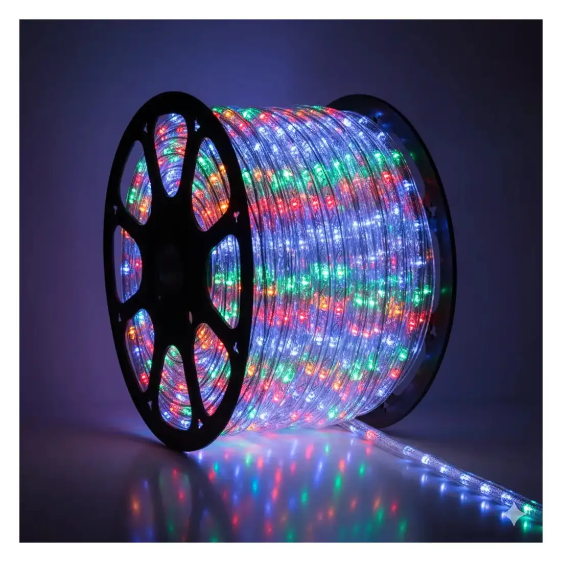Instalație tip furtun LED de 100 metri, flexibilă și rezistentă la interior și exterior. Disponibilă în culori: Albastru, Alb Rece, Alb Cald, Roșu și Multicolor. Cablu de alimentare 220V. Ideală pentru decor de Crăciun, Anul Nou, grădini sau terase.