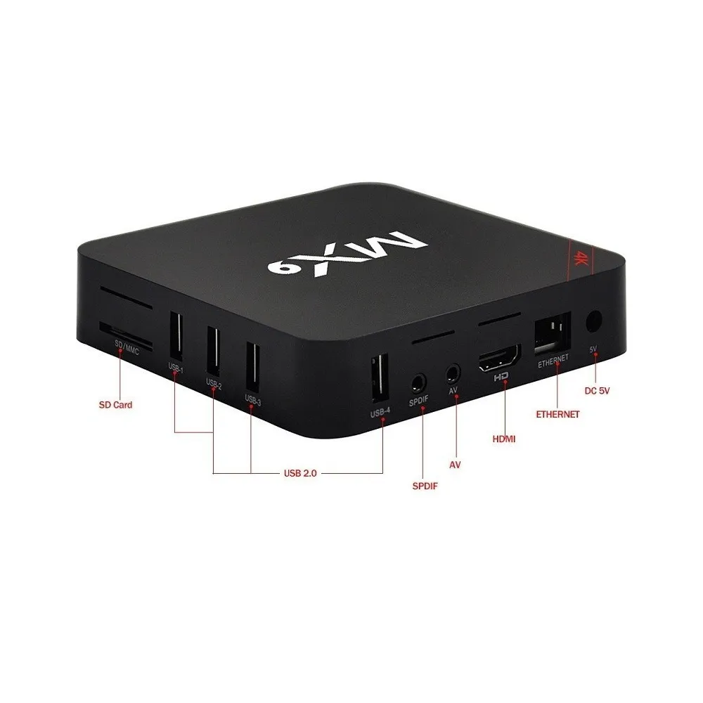 Mic si elegant, TV Box MX9 se poate conecta la internet prin WiFi sau cablu LAN iar la televizor prin intermediul portului HDMI.