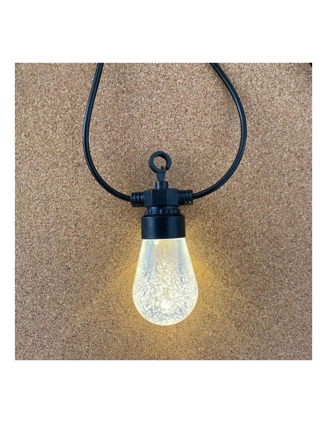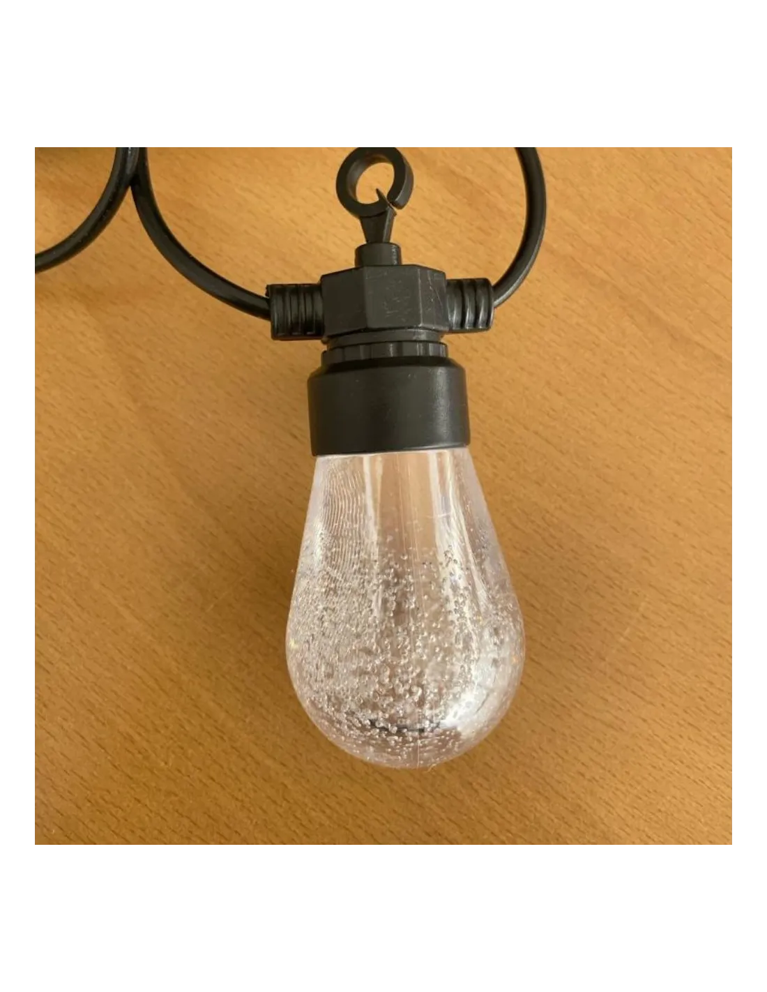 Ghirlanda luminoasă de exterior cu 10 becuri ST64 incluse este o opțiune minunată pentru a crea o atmosferă romantică și relaxantă în spațiul dvs. Aceasta ghirlandă luminoasă interconectabilă are un grad de protecție IP44, ceea ce înseamnă că poate fi utilizată în siguranță atât în interior, în restaurant, cât și în exterior, în grădină, pe terasă sau la evenimente în aer liber. Iată mai multe detalii despre această ghirlandă luminoasă: