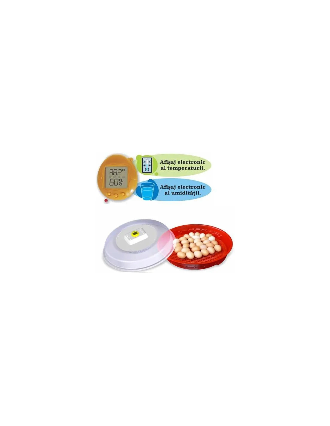 Capacitatea acestui incubator este de 70 oua gaina sau de 120 oua prepelita,