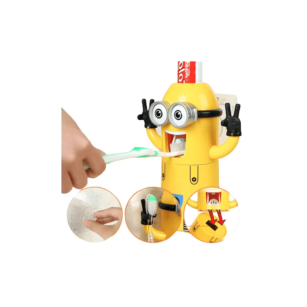Dozator pasta de dinti cu suport pentru 2 periute, model Minions