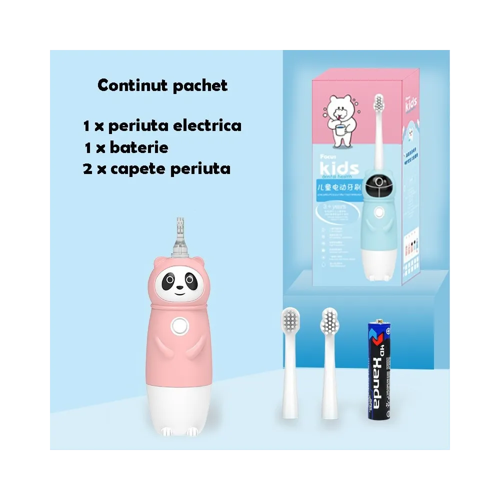 Periuta de dinti circulara pentru copii, din silicon, U-shape, roz
