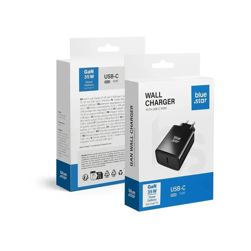 Adaptorul dispune de un port USB-C, fiind compatibil cu o gamă largă de smartphone-uri, tablete și alte dispozitive care suportă încărcarea rapidă.