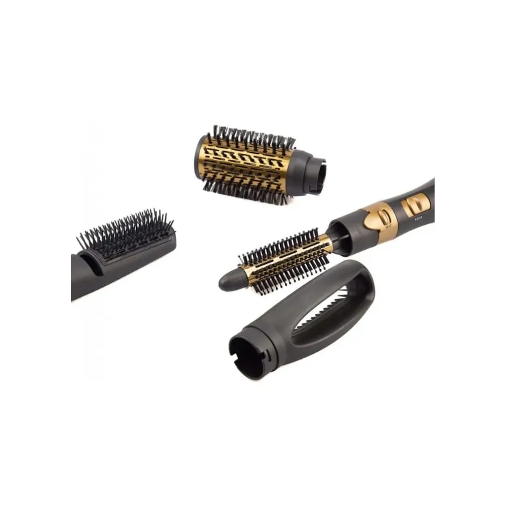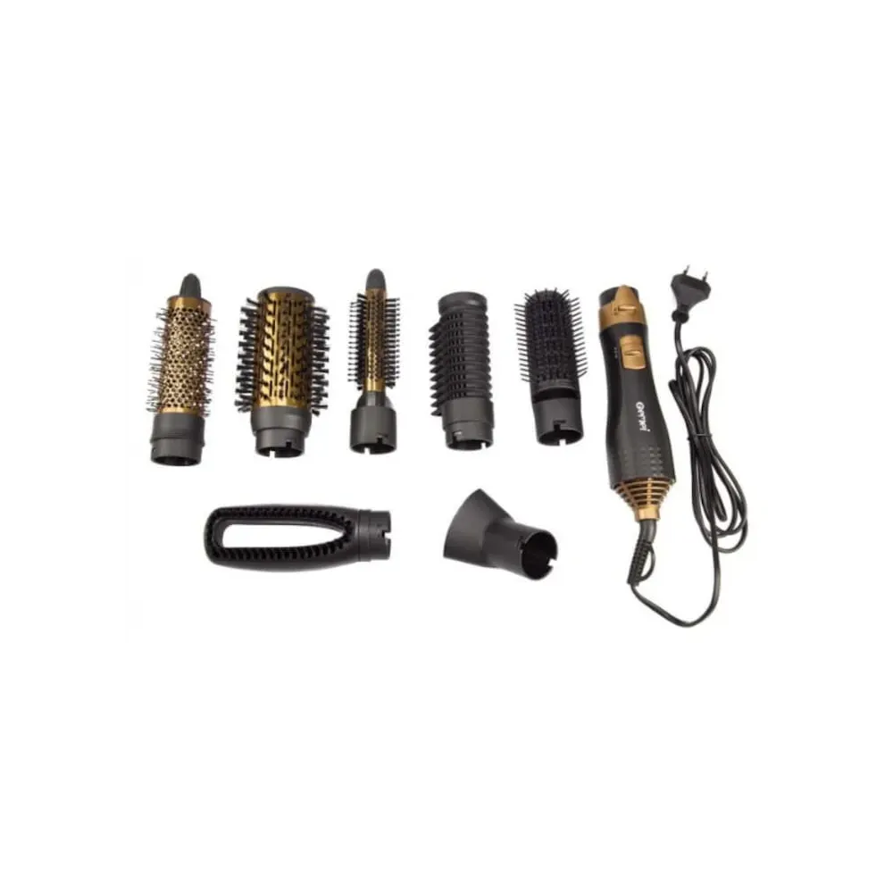 7 accesorii interschimbabile: uscător de păr, perie de îndreptare, perie jumătate rotundă, perie rotundă 50mm, perie rotundă 38mm, perie rotundă 21mm și pieptene gol – toate pentru a crea rapid coafuri variate.
