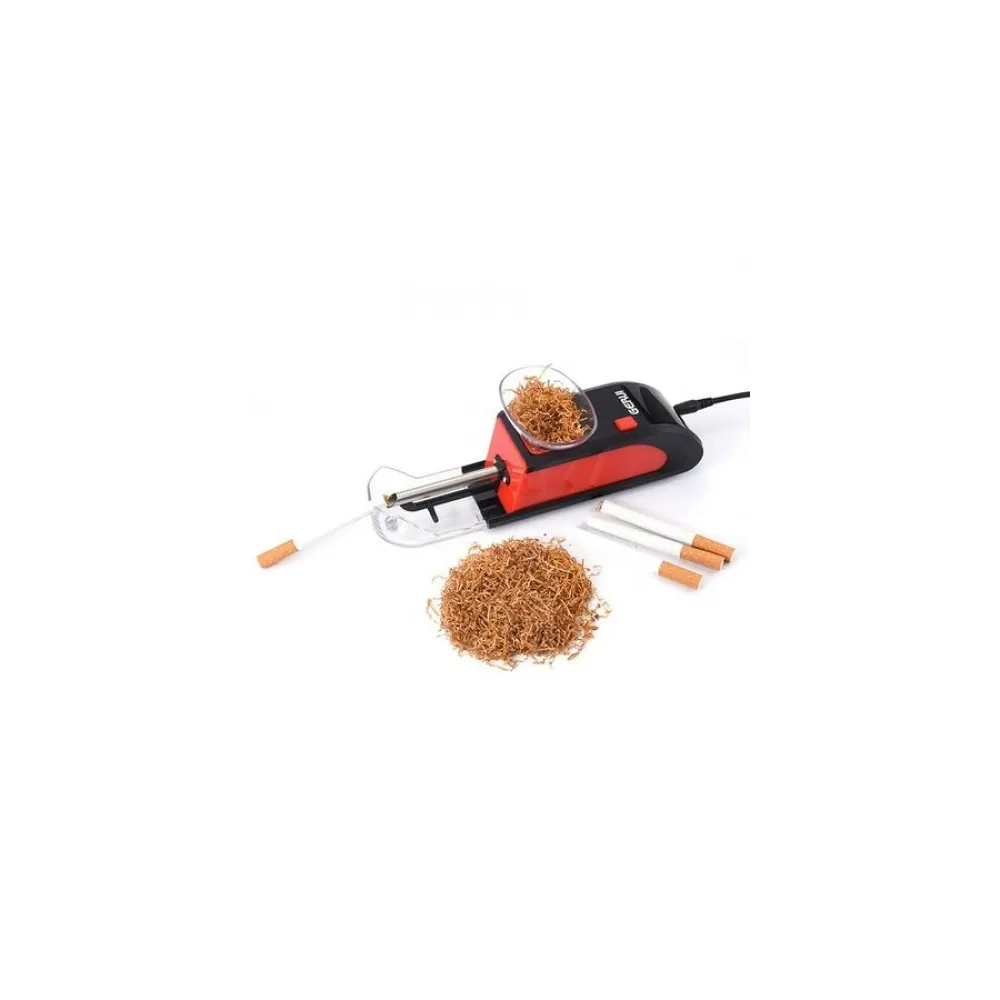 Aparat tip injector tutun electric pentru facut tigari Gerui 004 Pro Edition Aparatul de facut tigari este potrivit pentru toate tipurile de tutun cu diametru standard; Cu tutun, foaie de tigara si acest aparat electric va puteti face propriile tigari; Aparatul dispune de un buton de unde se poate regla densitatea tutunului la umplerea tuburilor,INSTRUCTIUNI DE FOLOSIRE,,Puneti tabac in cuva, , Apasati tubul de tigara peste suportul de tub metalic folosind o miscare de rotatie, glisati pana la capat si eliberati parghia,,Apasati butonul de indesare cu tutun si tubul metalic se va umple treptat; Tubul tigarii este impins intr-o parte de tabac si este o actiune normala; Pentru a va face singuri tigarile acasa, nu aveti nevoie decat de tutun si foaie de tigara si acest aparat electric va ajuta sa faceti propriile tigari perfecte;, Se alimenteaza la priza 220V prin intermediul alimentatorului inclus in pachet,,Dimensiuni 20,5*5,5*6 cm Greutate 376g