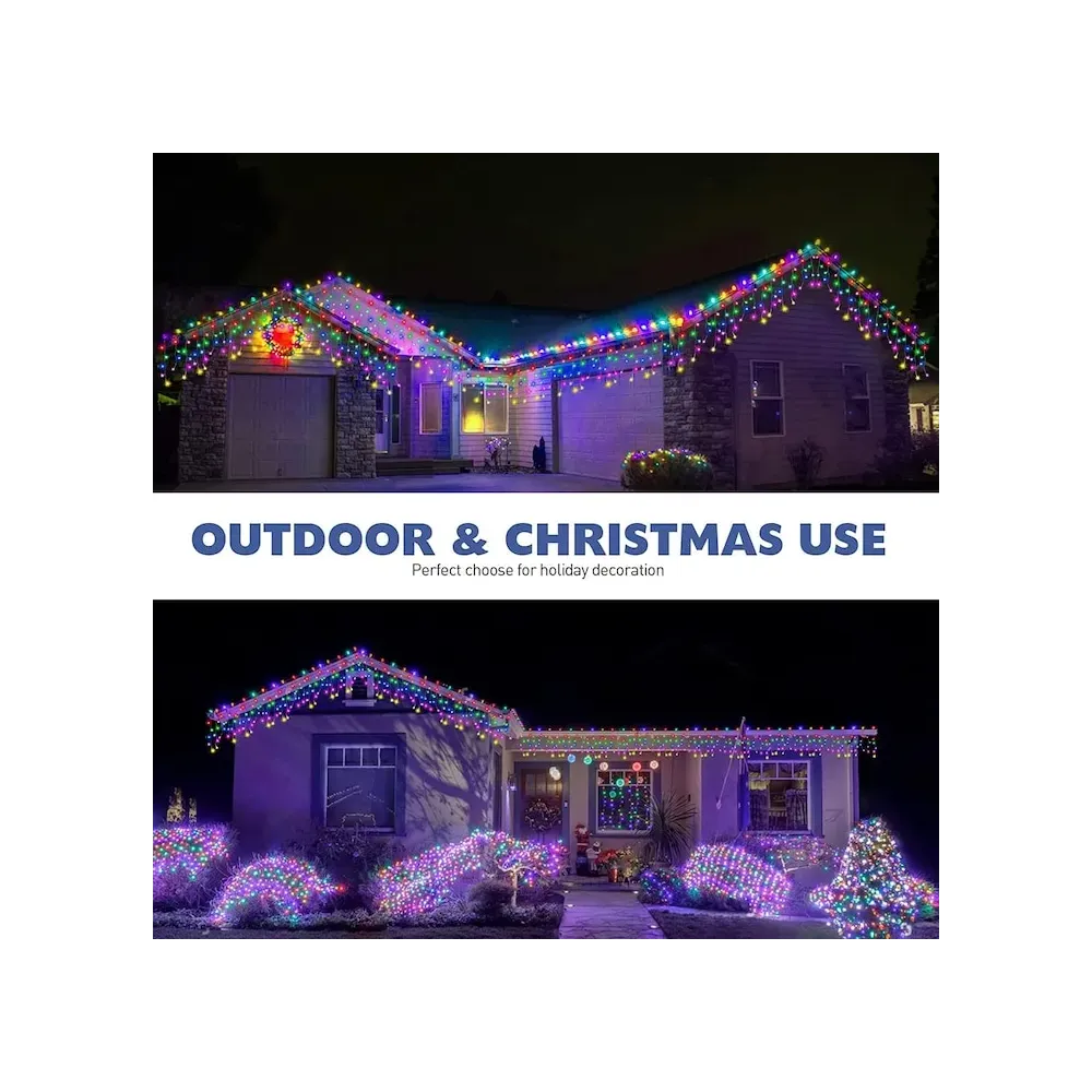 Decorează-ți casa sau grădina cu instalația LED premium de 23.5m! 500 LED-uri multicolor, franjuri și turturi cu efect flash, interconectabilă – magia sărbătorilor începe aici!