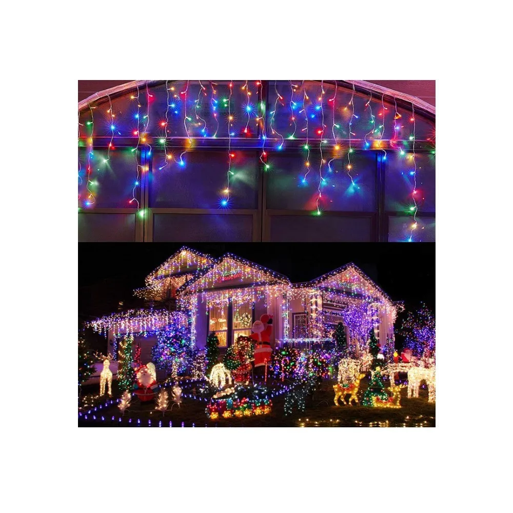 🌟 Instalație Luminoasă de Crăciun Tip Franjuri (Turturi) – 12 m, 300 LED-uri, Multicolor, IP44