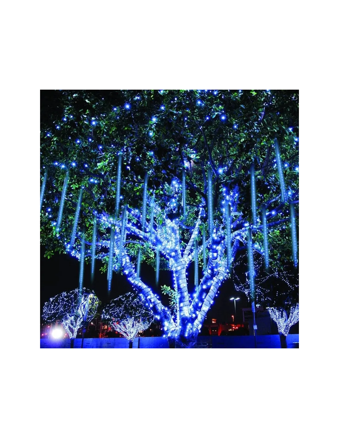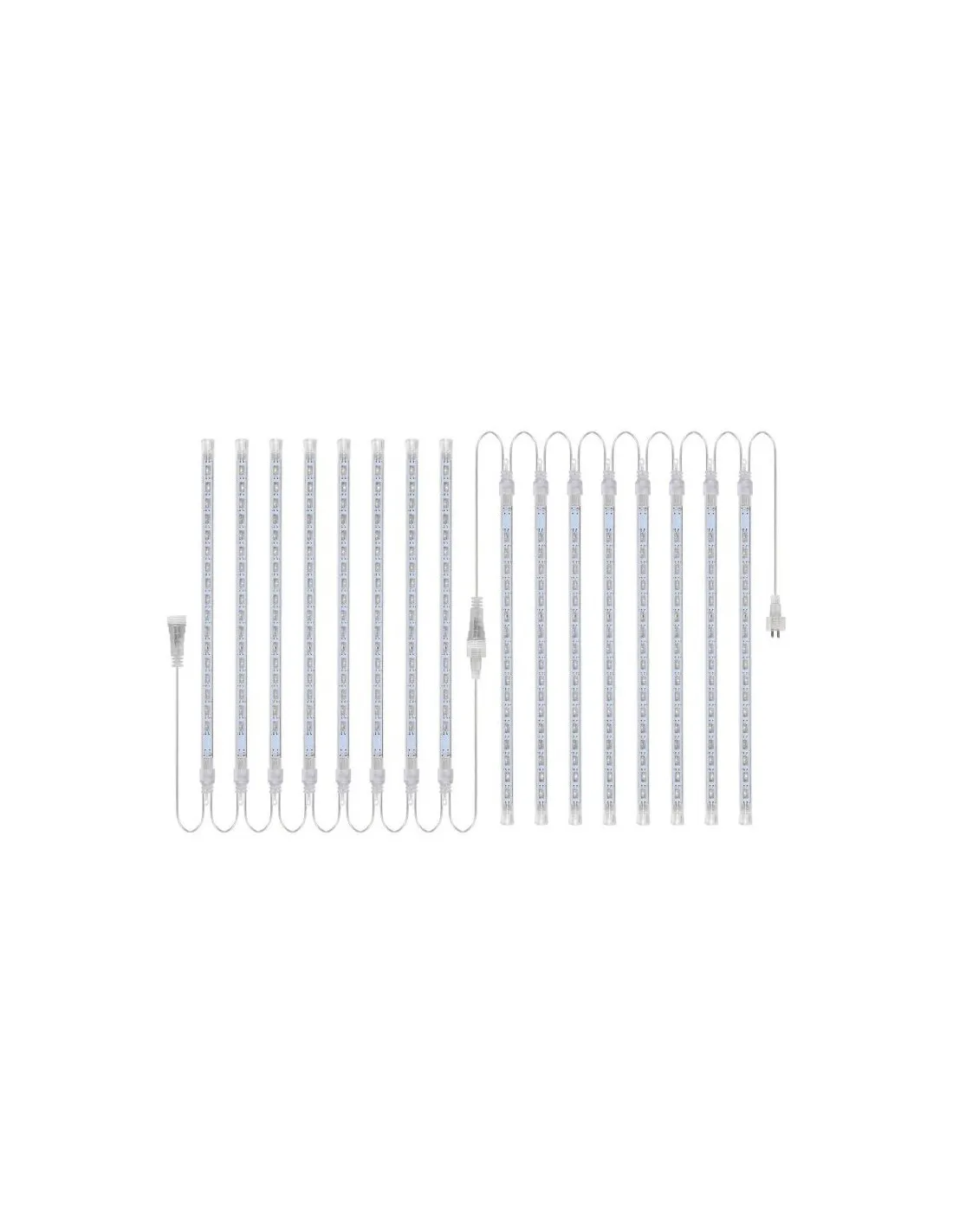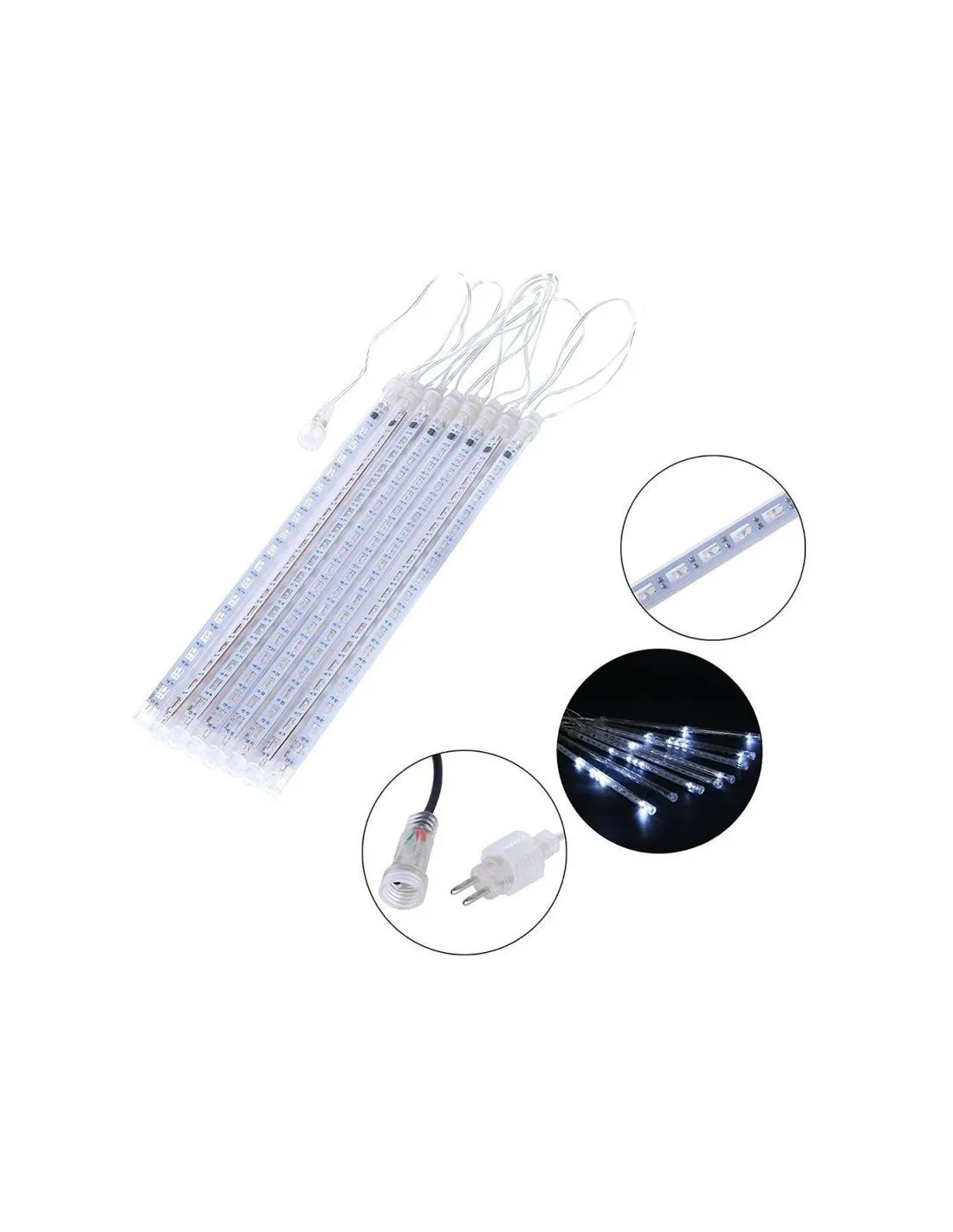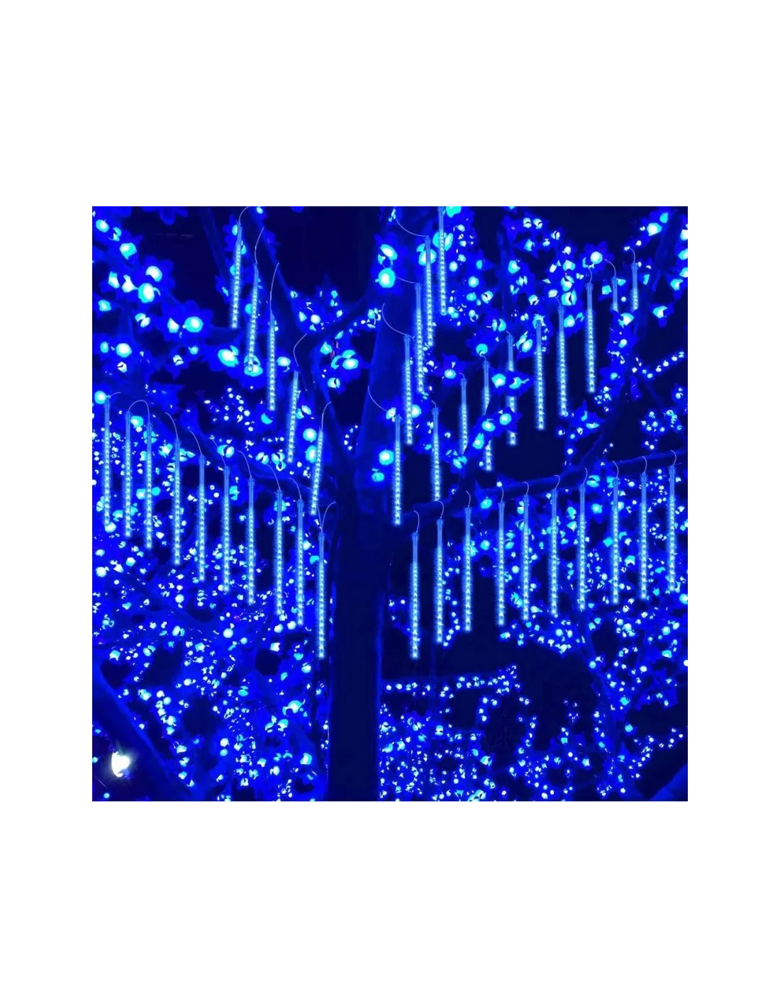 Instalație LED tip meteorit 50 cm, 8 tuburi luminoase, interconectabile, cu efect de ninsoare. Disponibilă în albastru, alb rece și multicolor. Ideală pentru decor interior și exterior protejat, alimentare 220V.