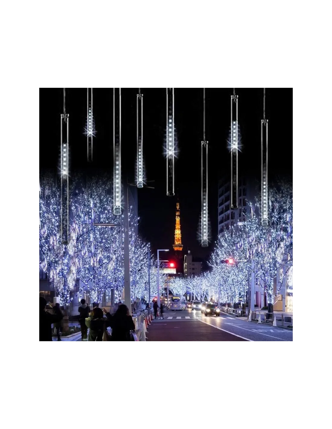 Instalație LED Meteorit 50cm – 8 Tuburi Luminoase, Interconectabile, Interior & Exterior