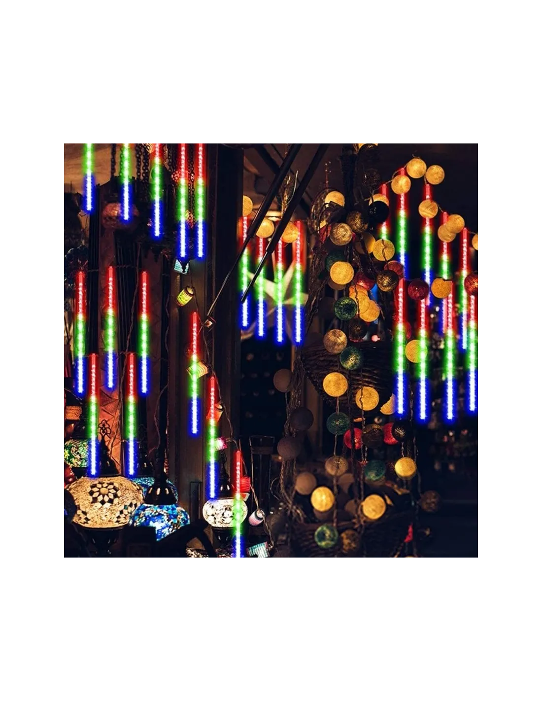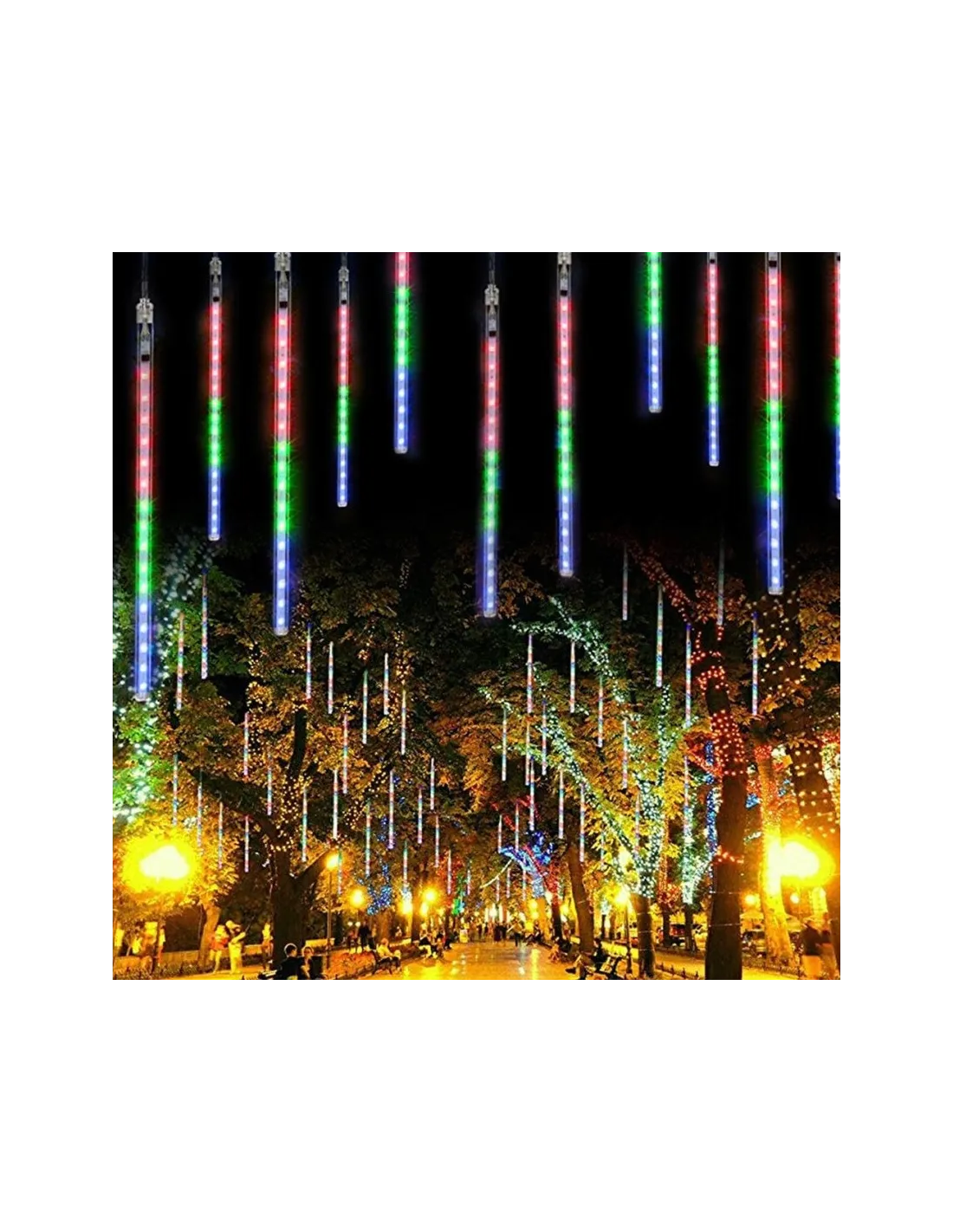 Instalație LED Meteorit 50cm – 8 Tuburi Luminoase, Interconectabile, Multicolor, Interior & Exterior