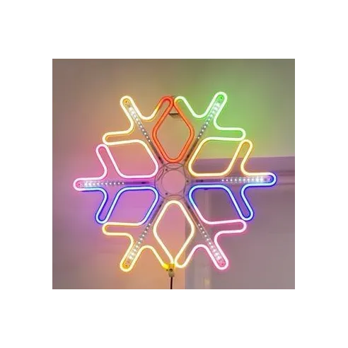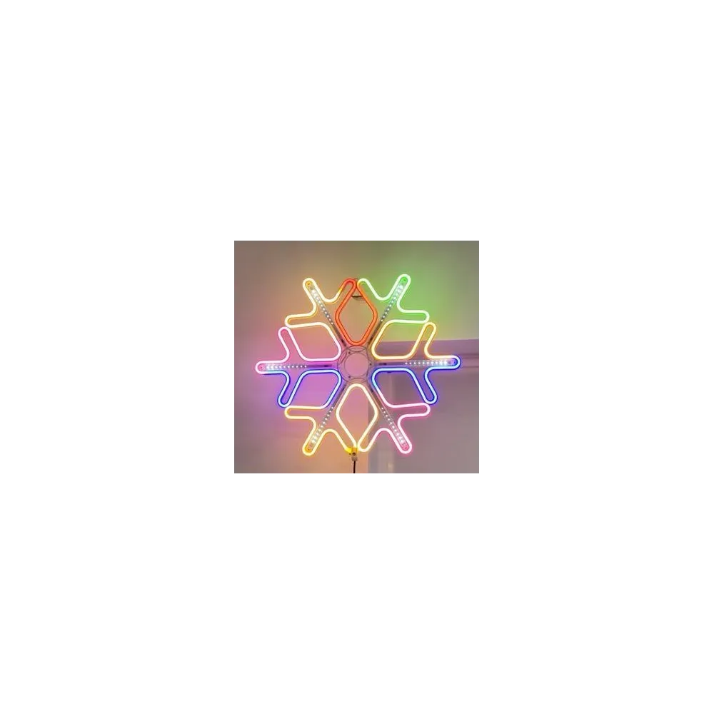 Fulg de Nea LED RGB 80 cm, cu turturi și meteoriți de lumină, flash, pentru decor interior și exterior. Alimentare 230V, lumina albă / RGB, material plastic durabil.
