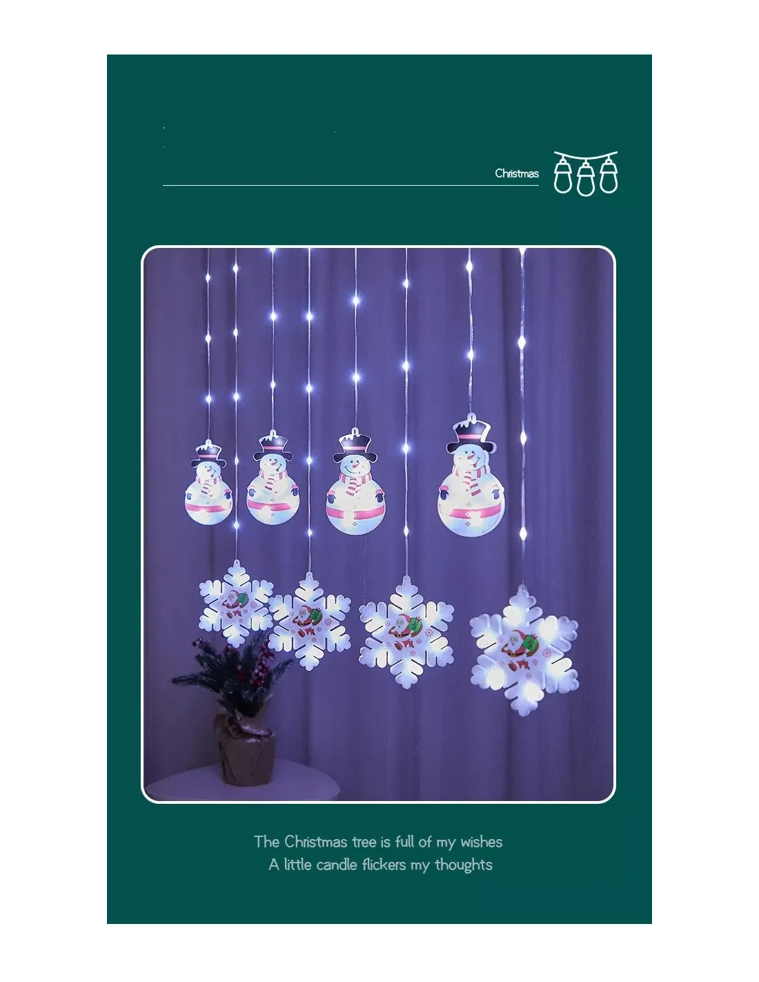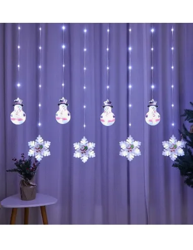 Perdea de Crăciun LED, Om de zapada si Fulg, 3M, interconectabila, de exterior/interior, LED turnat