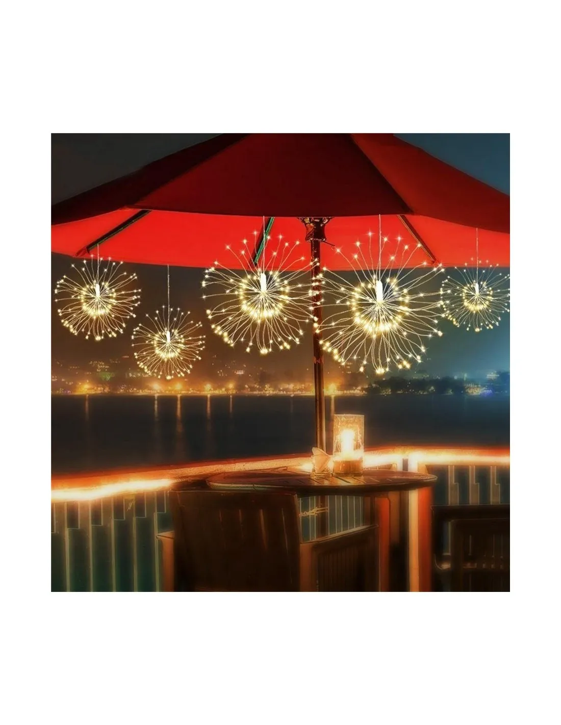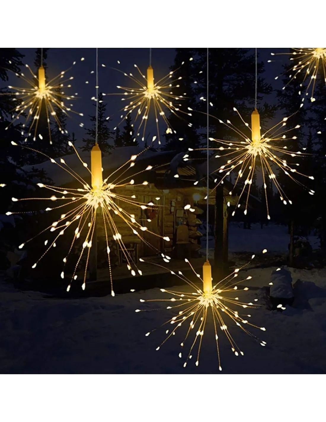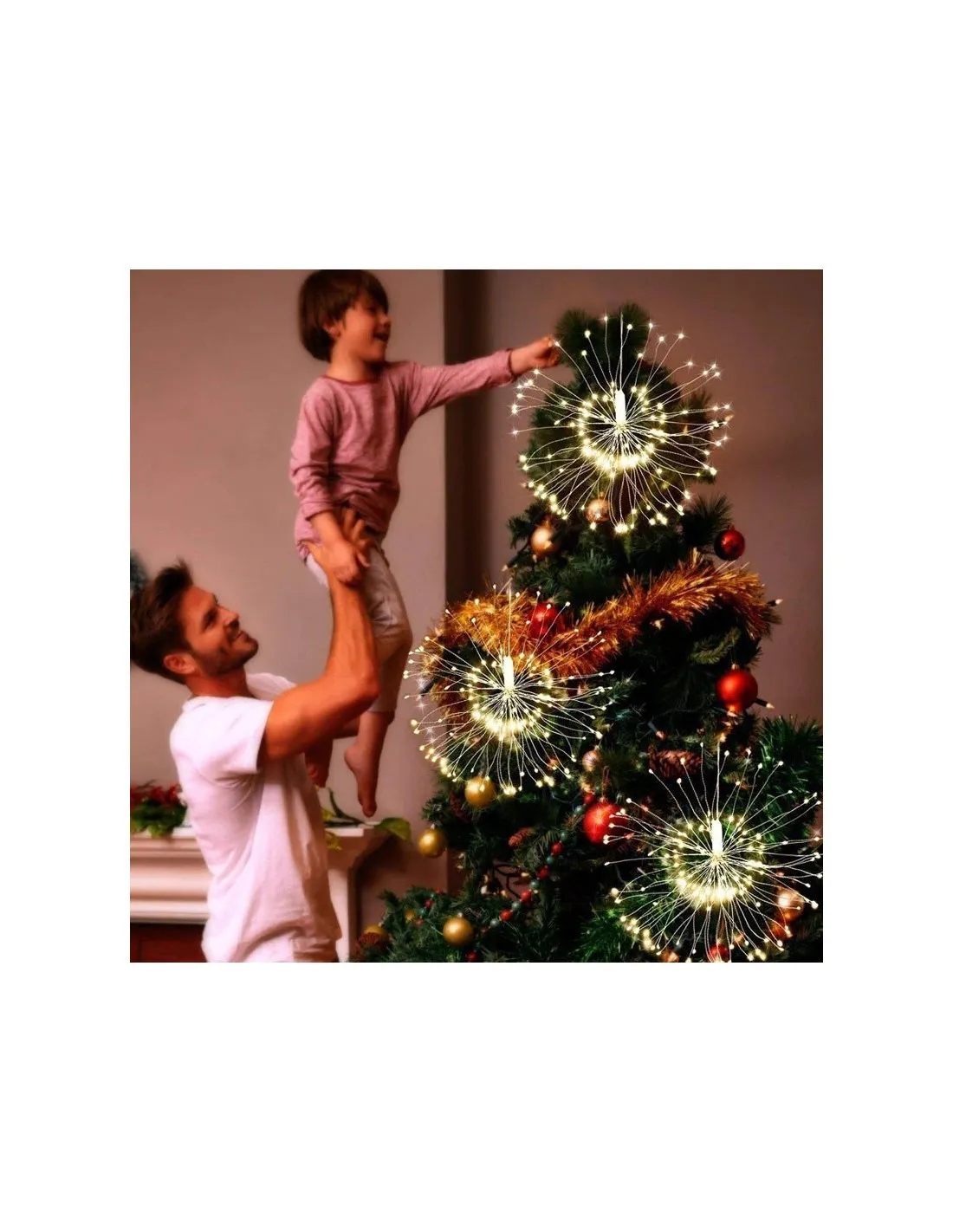Set de 2 instalații tip artificii, 96 LED-uri pe fir de cupru, interconectabile, multicolore și flexibile. Include 8 jocuri de lumini, perfect pentru decoruri festive de Crăciun și Anul Nou, în interior sau exterior.