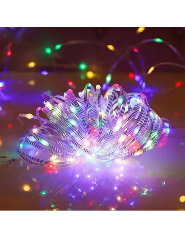 Ghirlanda Luminoasa Decorativa din Cupru 100M cu 800 LEDuri, Cablu Transparent, 8 Programe, Lumina Colorata, de Exterior