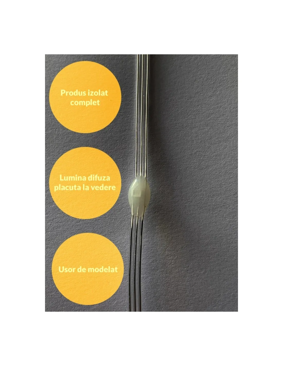 - Lungime standard: 100 m (+~65 cm cablu prelungitor de la ultimul led pana la stecher)