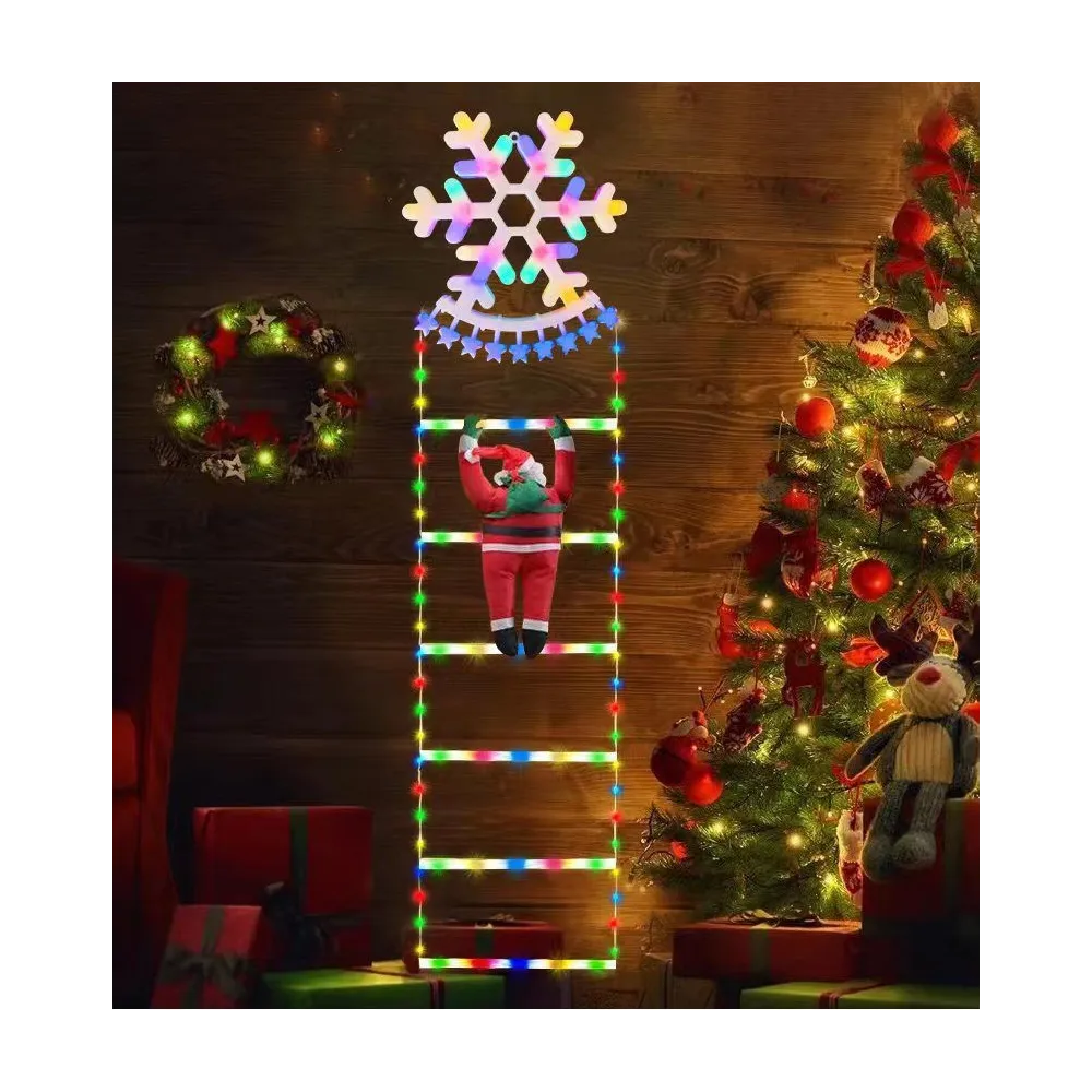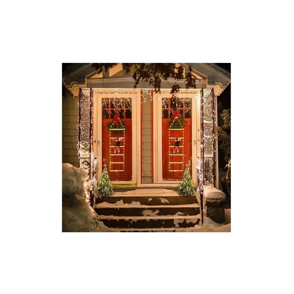 Decoratiunea este realizata pentru utilizare in exterior, avand protectie IP65, ceea ce o face rezistenta la intemperii si sigura pentru utilizare in gradina, pe balcon sau pe fatada casei. Cu o dimensiune generoasa de 160x25 cm, Mos Craciun urcand pe scara adauga un efect spectaculos in decorul de sarbatori, fie ca este montata pe pereti, langa usa sau chiar in interior.