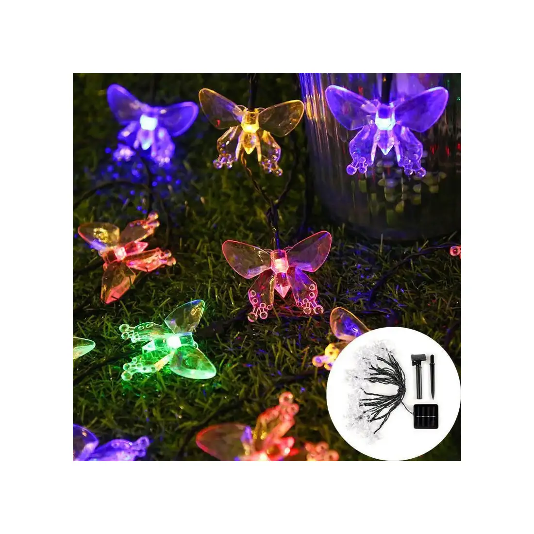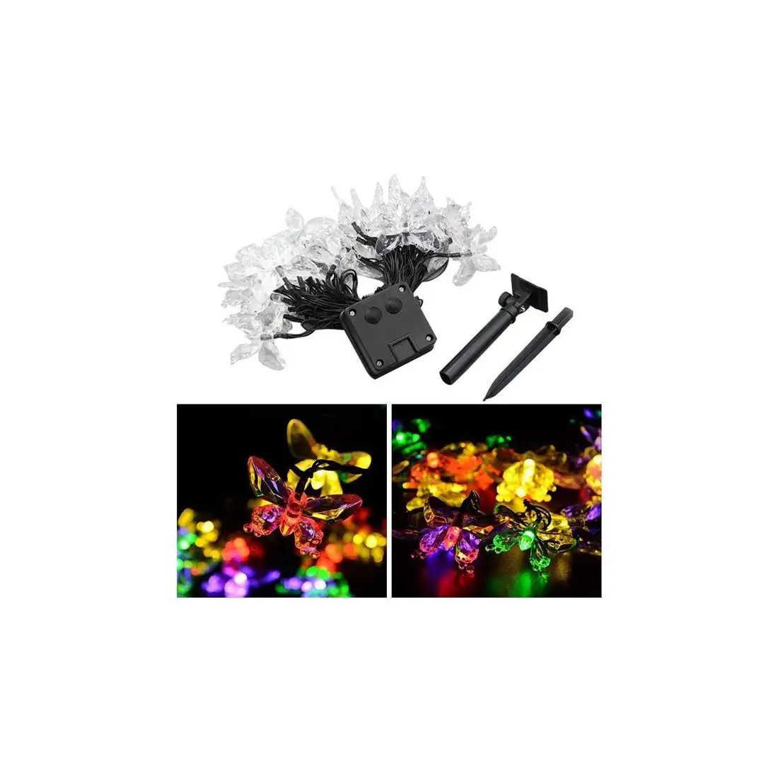 Instalatie solara 50 LED fluturi Fairy, multicolor