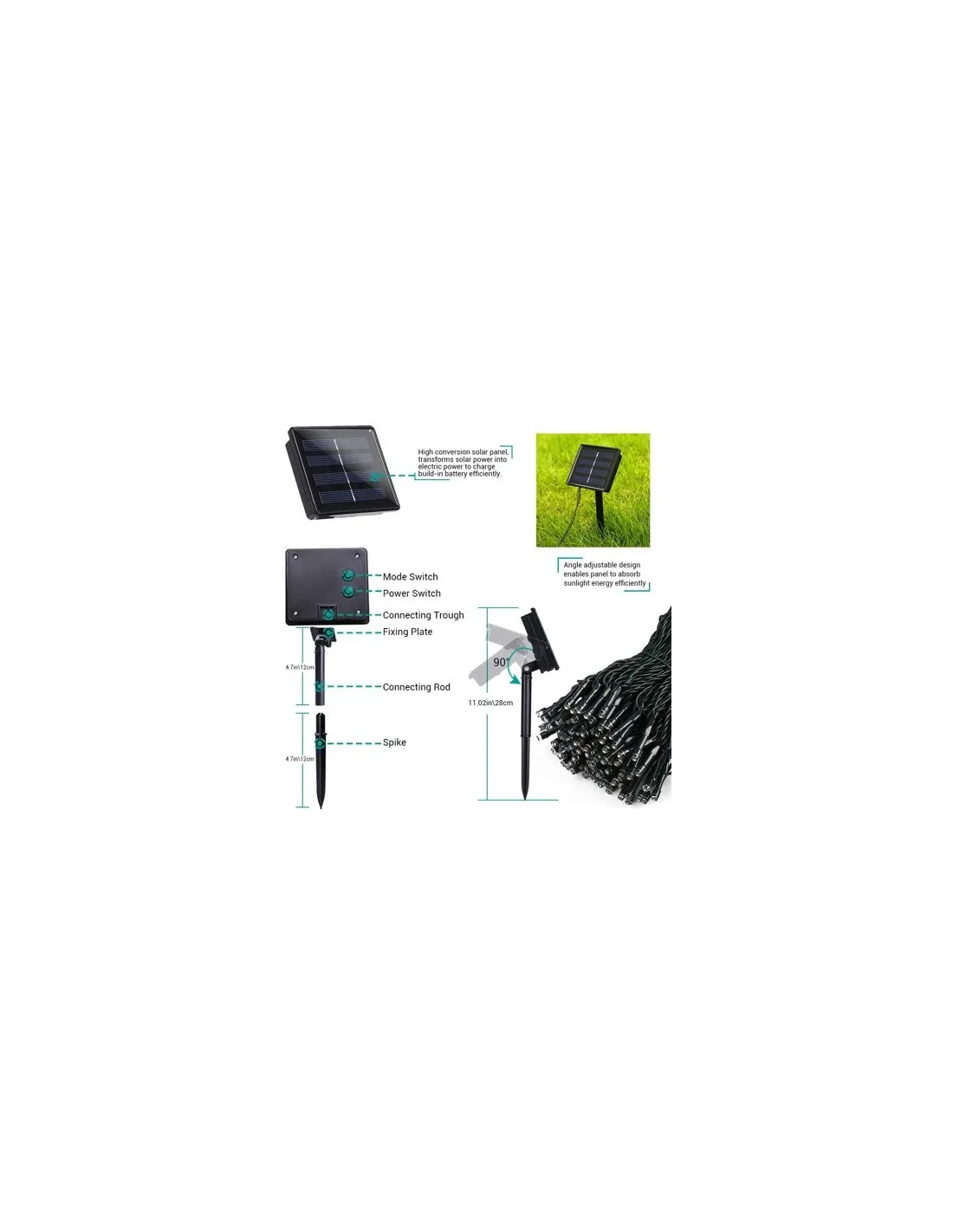 Instalatie solara decorativa, 100 LED-uri, multicolor, 12 m, 2 moduri iluminare