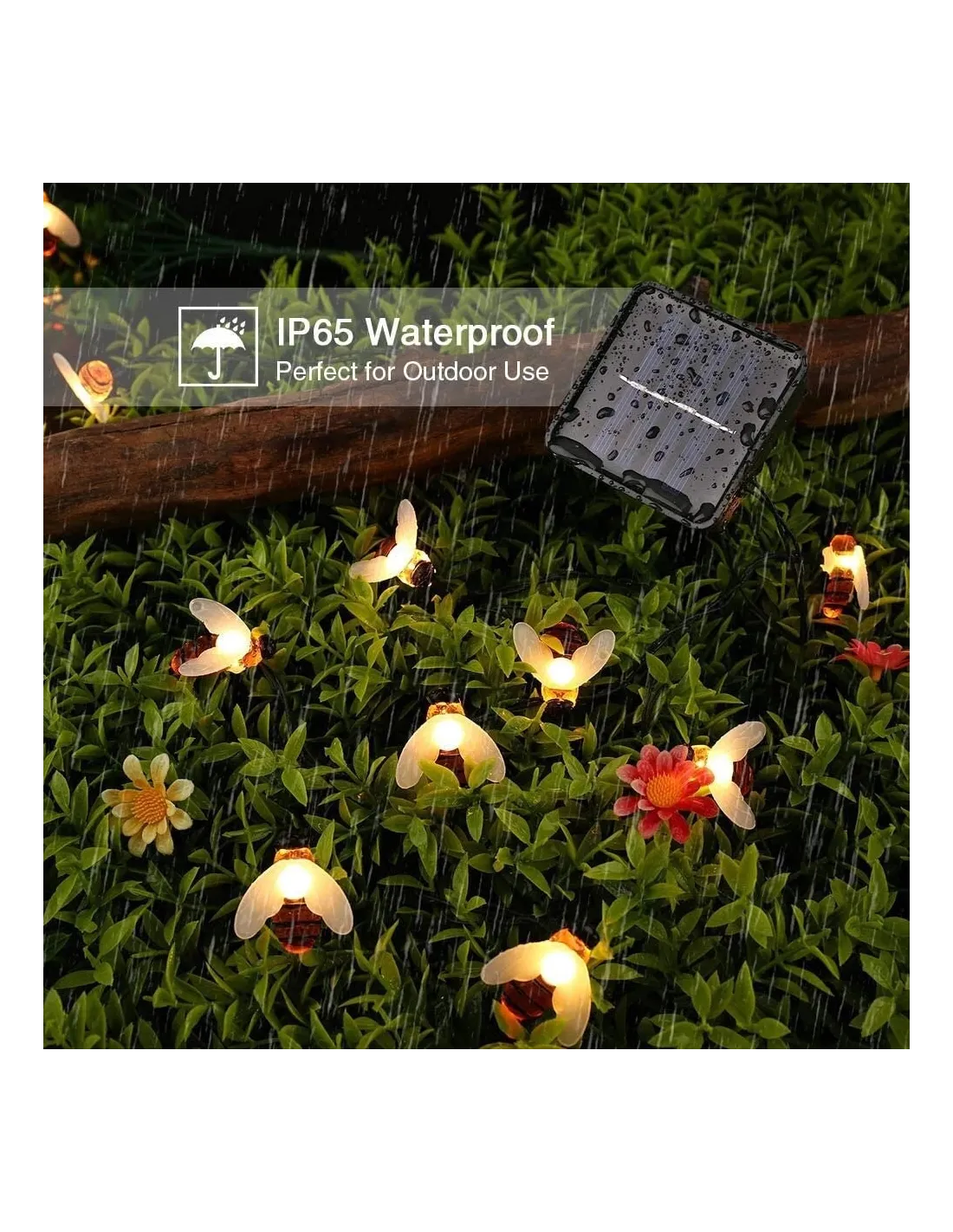【Rezistent la apă】 Atât luminile, cât și panoul solar sunt rezistente la apă IP65. Nu vă faceți griji să le folosiți în ploaie.