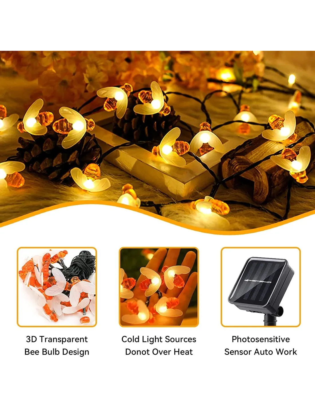 【Lămpi solare pentru albine】50 de lumini LED foarte drăguțe pentru albine decorează grădinile, curtea, poarta, curtea, nunta, petrecerea minunat și exclusiv.