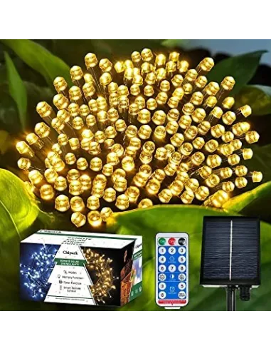 Instalatie solara decorativa, 300 LED-uri, alb cald, 33 m, telecomanda, panou solar mare2024