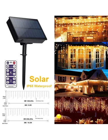 Instalatie solara franjuri, turturi ingali, lungime12m , 300 led-uri , alb cald