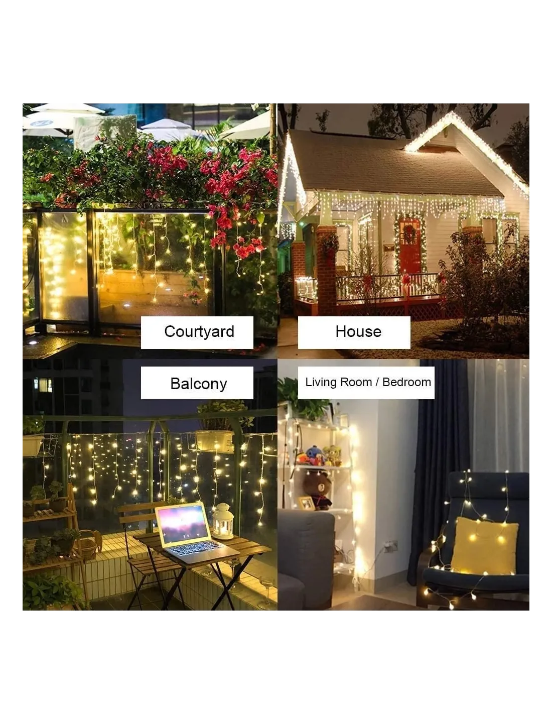 - 【8 moduri de iluminare pentru a crea multă distracție】 Moduri de iluminare superbe, inclusiv combinație, licurici intermitent, valuri, estompare, urmărire/intermitent, estompare lent, sclipire/sclipire și aprins constant, care pot crea atmosfere diferite pentru viața ta. În întuneric, firul devine invizibil, lăsând doar luminile strălucitoare.