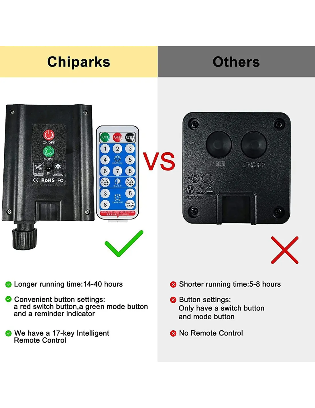 - 【 Lumini solare cu telecomandă】 Luminile noastre solare de grădină pentru exterior au o telecomandă cu 17 taste, toate sunt controlate de telecomandă. 8 moduri de iluminare pot fi comutate prin cele 8 taste numerice corespunzătoare de pe telecomandă. Avem, de asemenea, funcții de reglare a luminozității și sincronizare, care vă permit să aprindeți lumina dorită fără a vă deplasa, ceea ce este foarte convenabil.