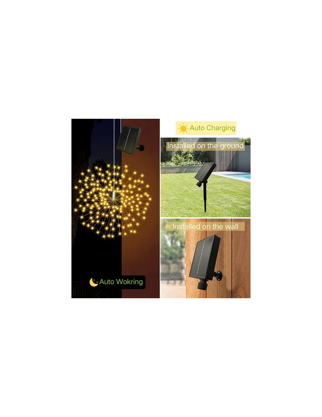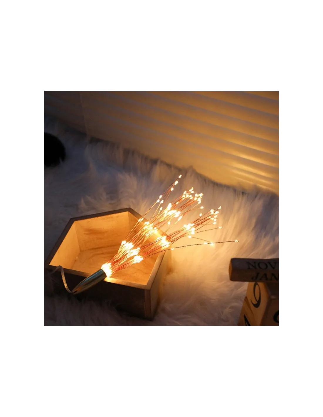 Avem un total de 40 de lumini de cupru pentru fiecare foc de artificii, iar fiecare strun de lumini are 5 becuri cu leduri. Conectate împreună prin 5 bucăți de lumini de artificii, un total de 500 de LED-uri, alte lumini de artificii au 120LED, 150LED. Luminile LED Starburst folosesc becuri mai strălucitoare, rezistente la apă și alb cald pentru a economisi energie electrică. Nu devine fierbinte în timpul utilizării și este foarte sigur.