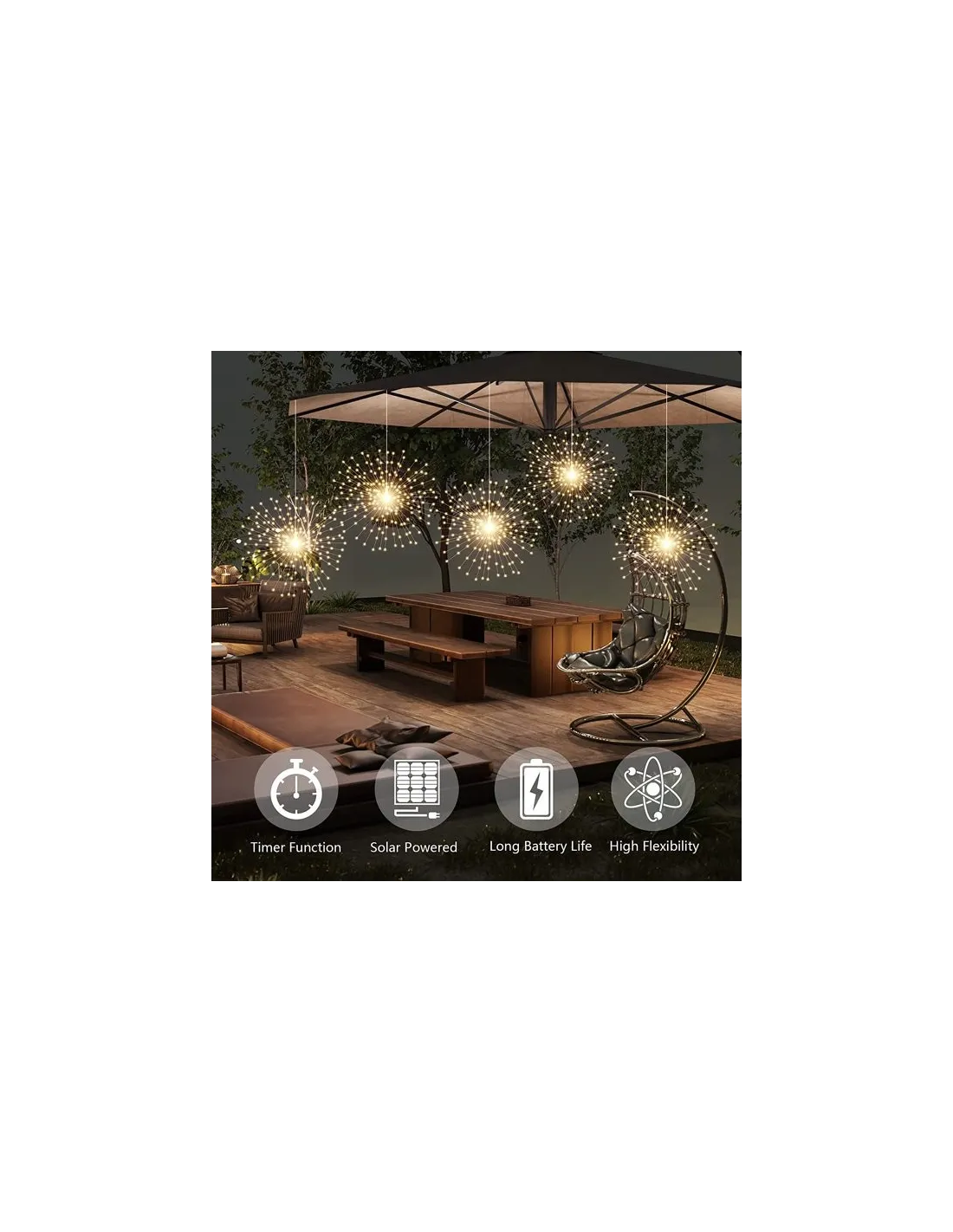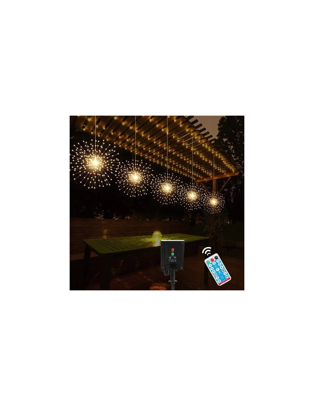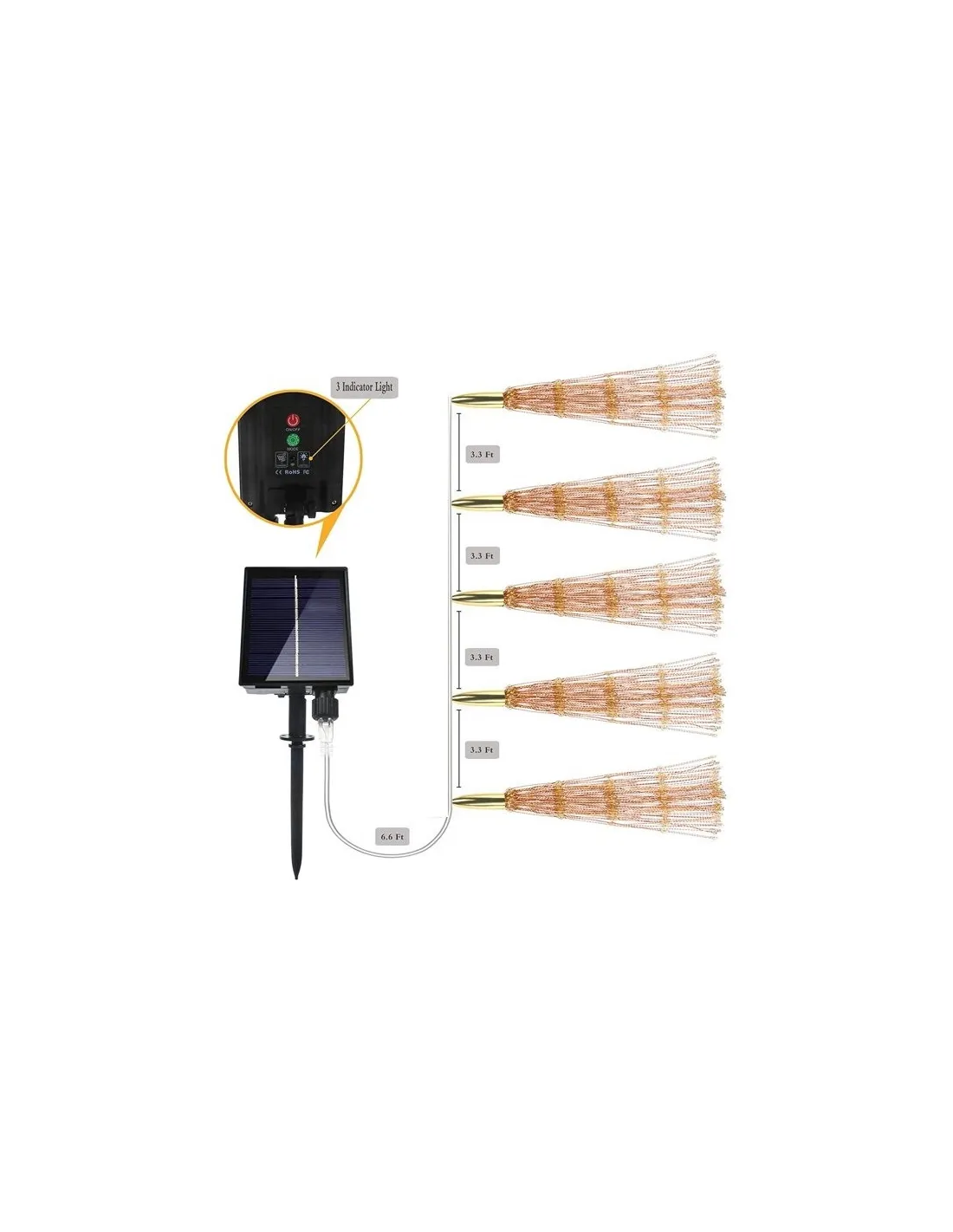 Set 5 artificii solare , 5x 100 LED fir cupru, telecomanda ,culoare alb cald