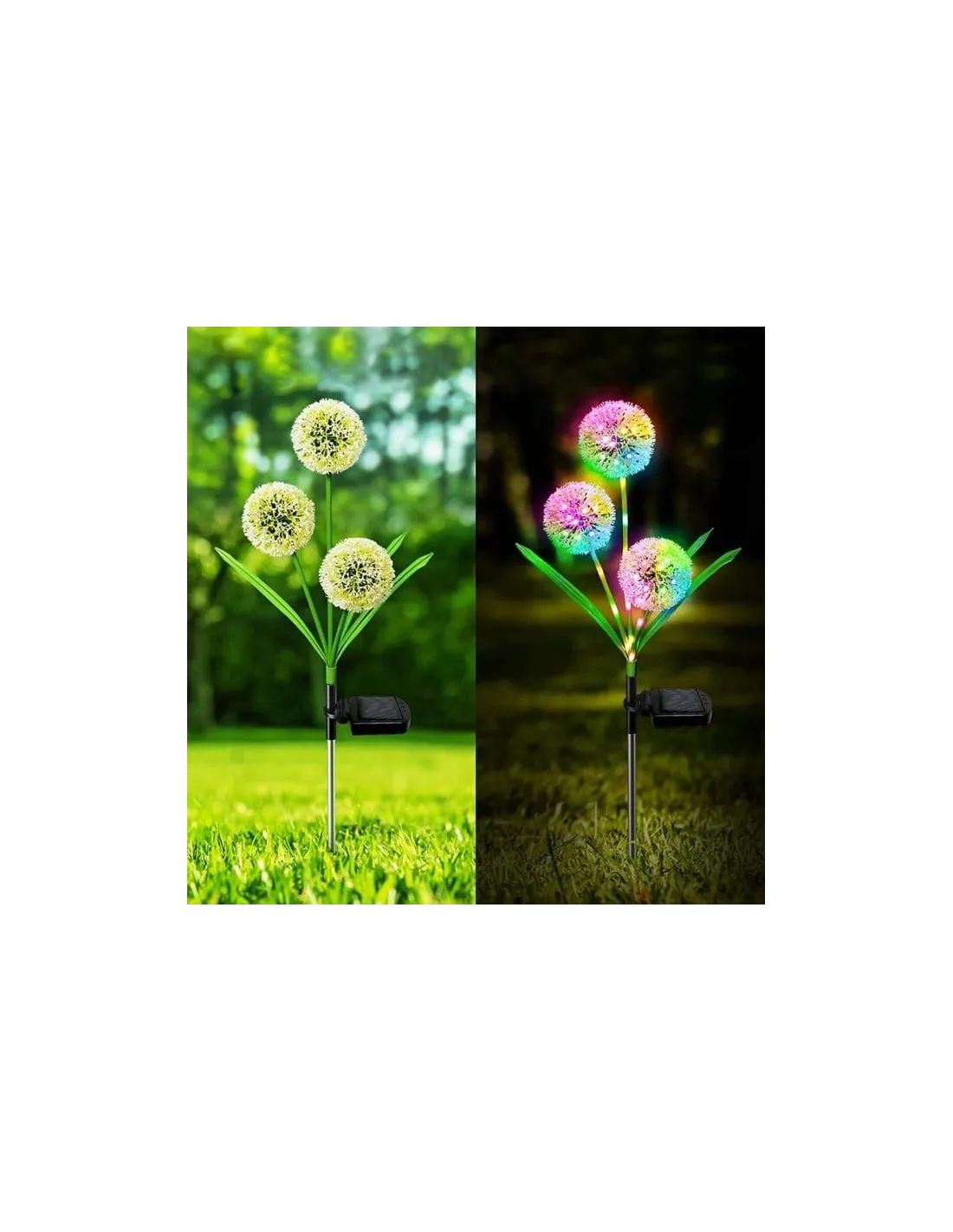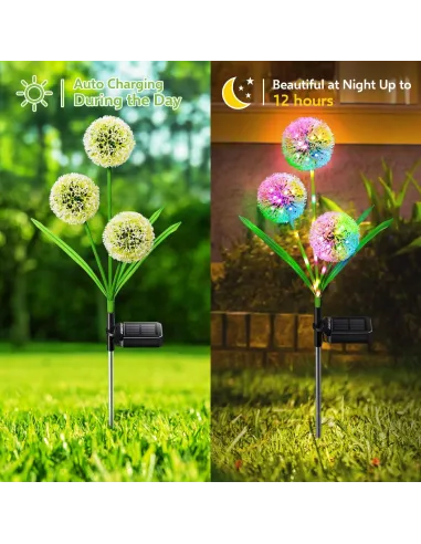 Nu este nevoie de cabluri sau prize, doar asezati luminile de papadie in gradina dvs. si porniti intrerupatorul si bucurati-va de cele mai frumoase lumini decorative solare din lume. Lastarii si frunzele sunt tinute in pozitie de sarma de otel, ceea ce ofera flexibilitate si durabilitate extrema, permitand in acelasi timp indoirea lampilor in orice stil sau unghi.