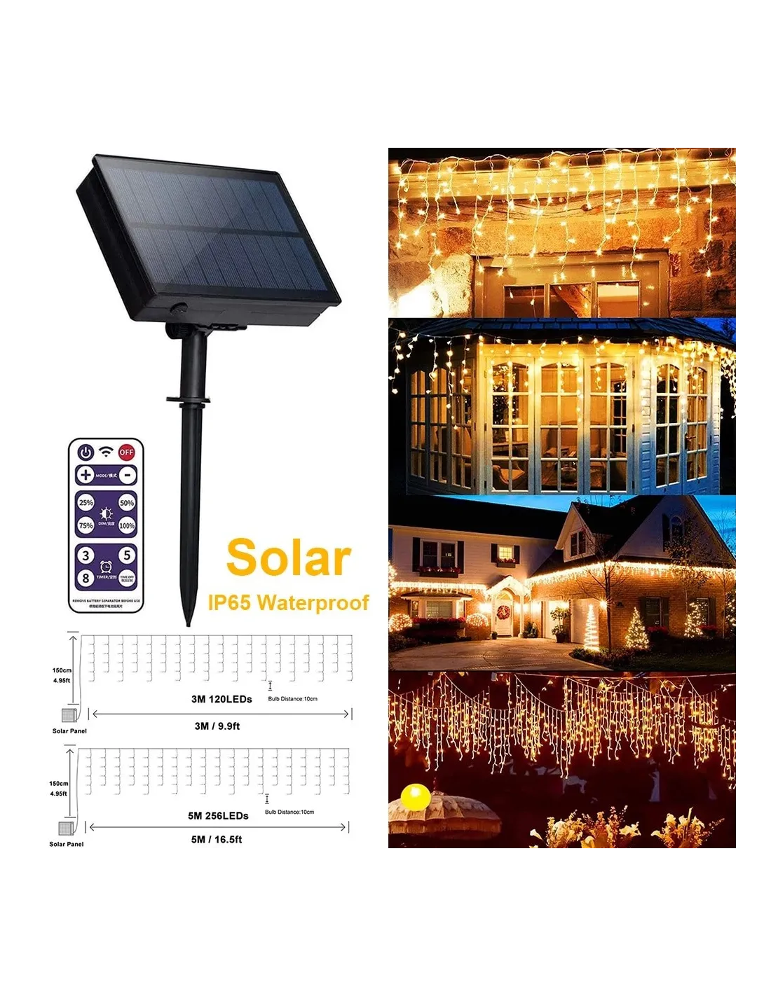 Instalatie Solara franjuri, turturi ingali, lungime12m , 300 led-uri, diverse culori