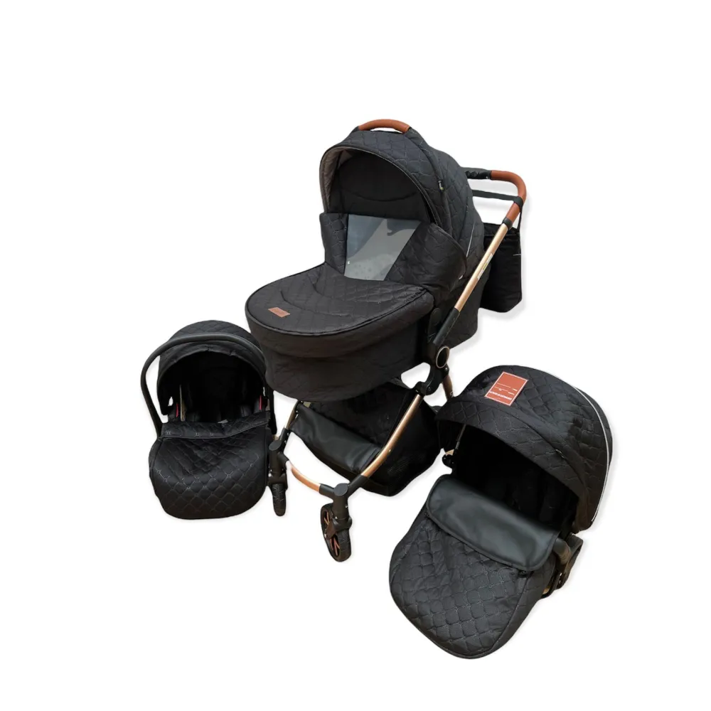 Carucior 3 in 1, 3 piese landou, sport si scoica, 0-36 luni, negru, RED-T6