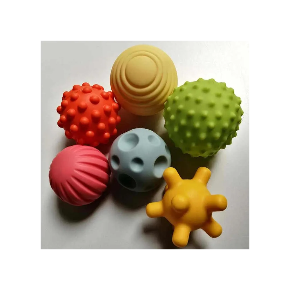 Acest set include 6 bile texturate, ușor de apucat, care stimulează simțurile tactile ale copilului și îi încurajează explorarea în siguranță și cu voie bună. Cu aceste bile multi-texturate, micuțul se poate juca și dezvolta abilitățile motorii fine într-un mod distractiv.
