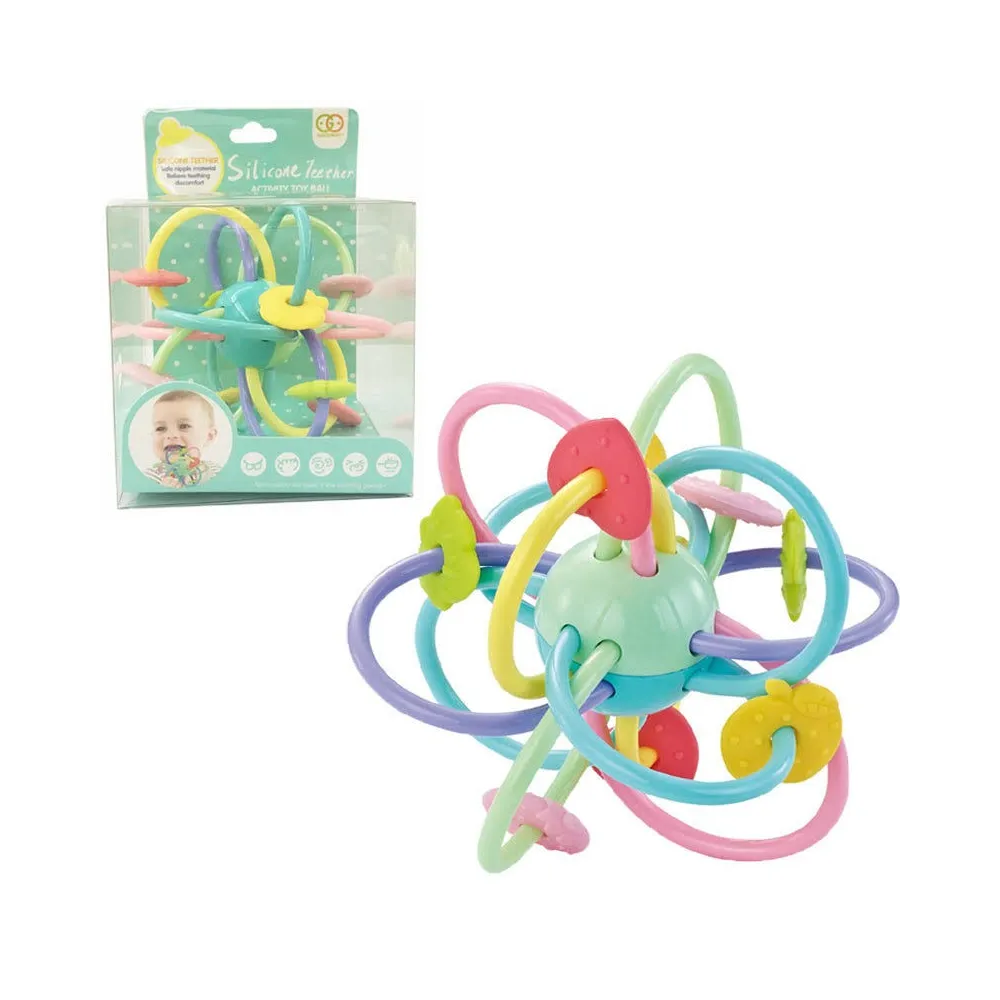 Jucarie Motrica siliconata, elastica pentru bebelusi, interactiva si pentru dentitie, ideala pentru dezvoltarea abilitatilor senzoriale, de atentie si a perceptiei culorilor.