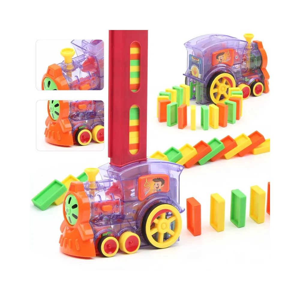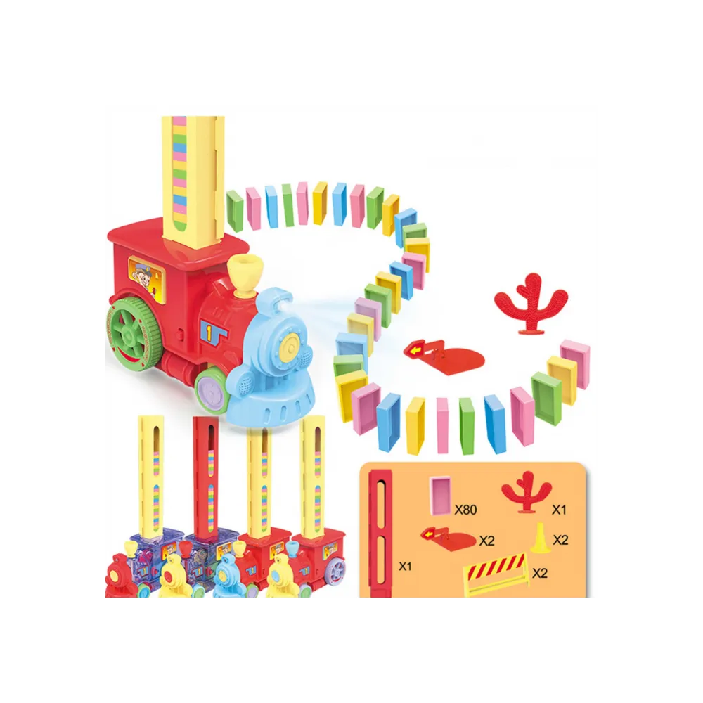 Trenuleț Domino pentru Copii – 80 Piese, Construcție Automată, Lumini & Sunete