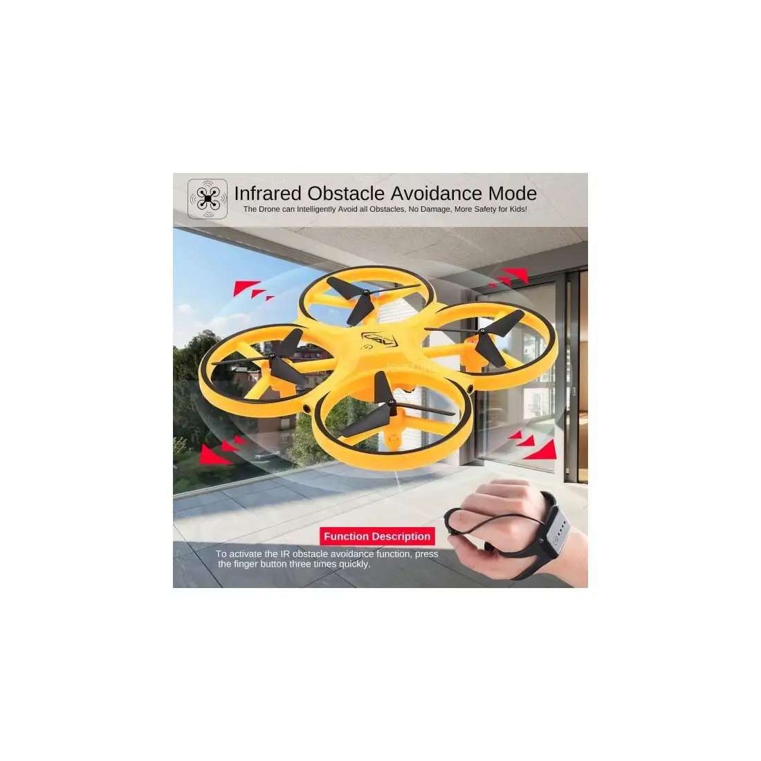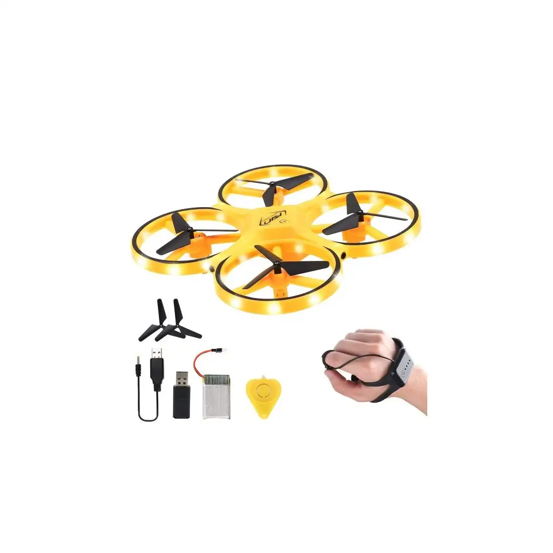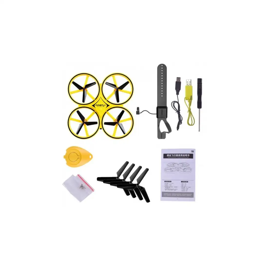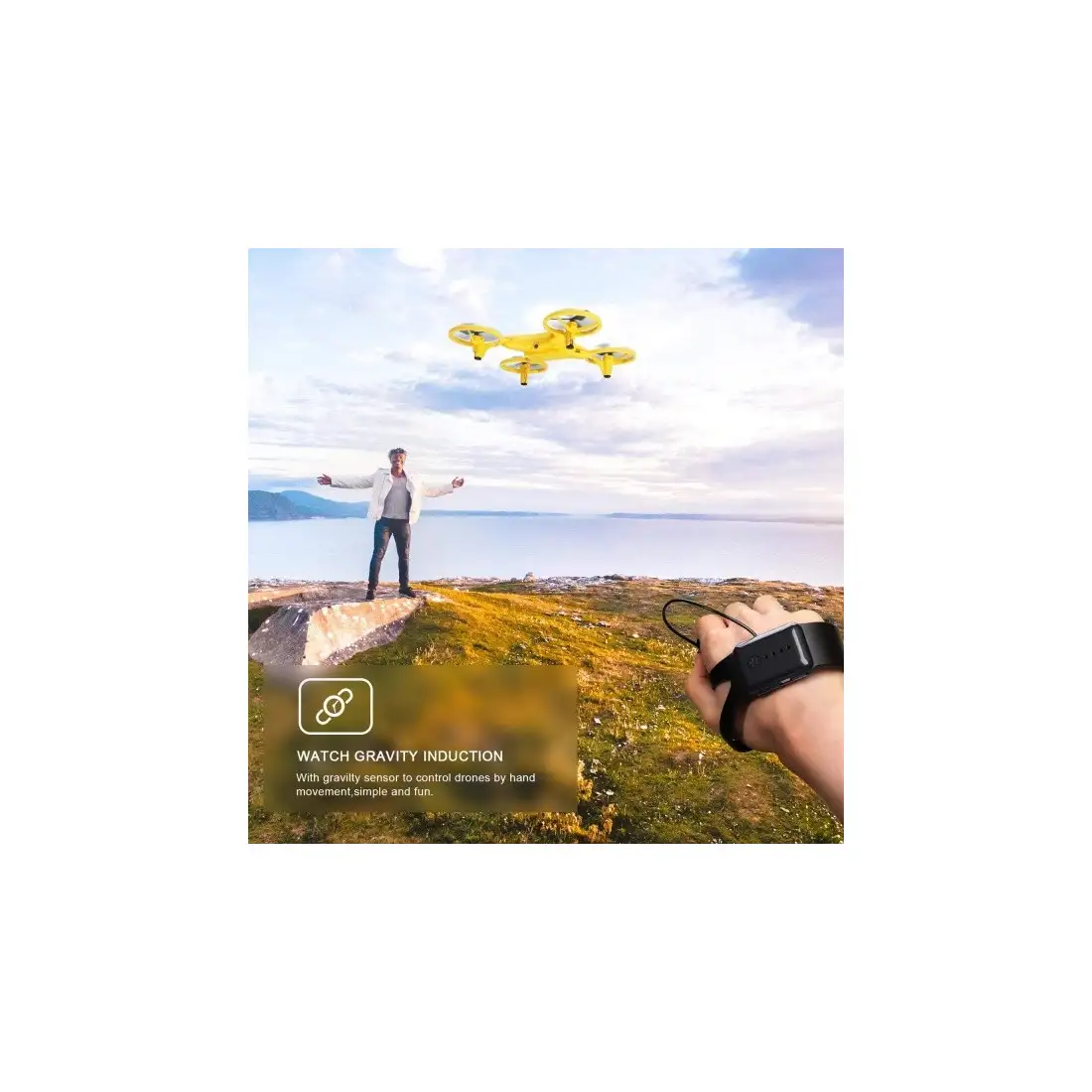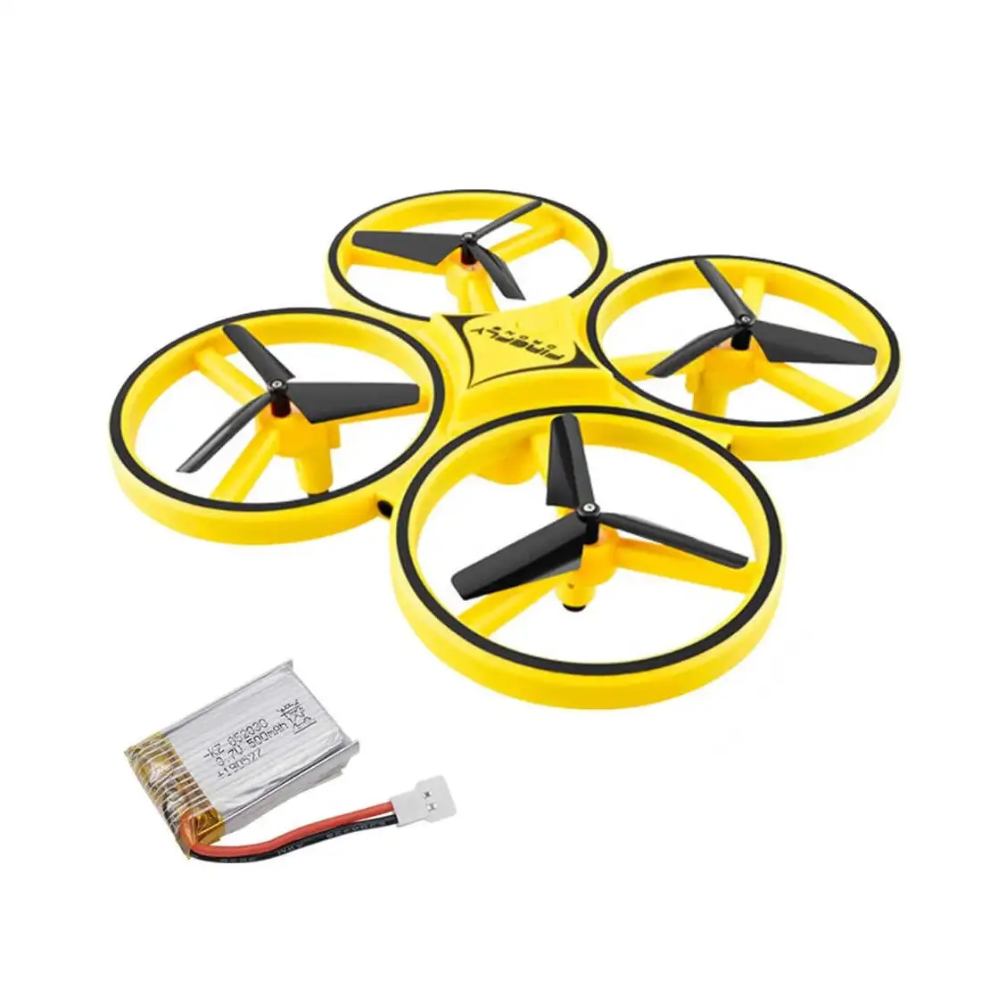 Activeaza drona din butonul de pornire. Aruncati pur si simplu drona in sus si aceasta va incepe sa zboare tinandu-si singura echilibrul gravitational. Controlati drona cu ajutorul butonului din telecomanda de pe deget.