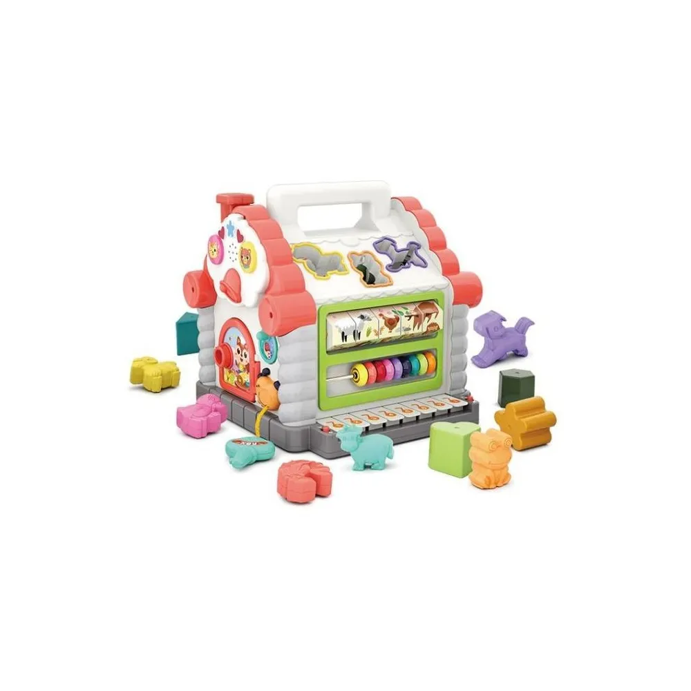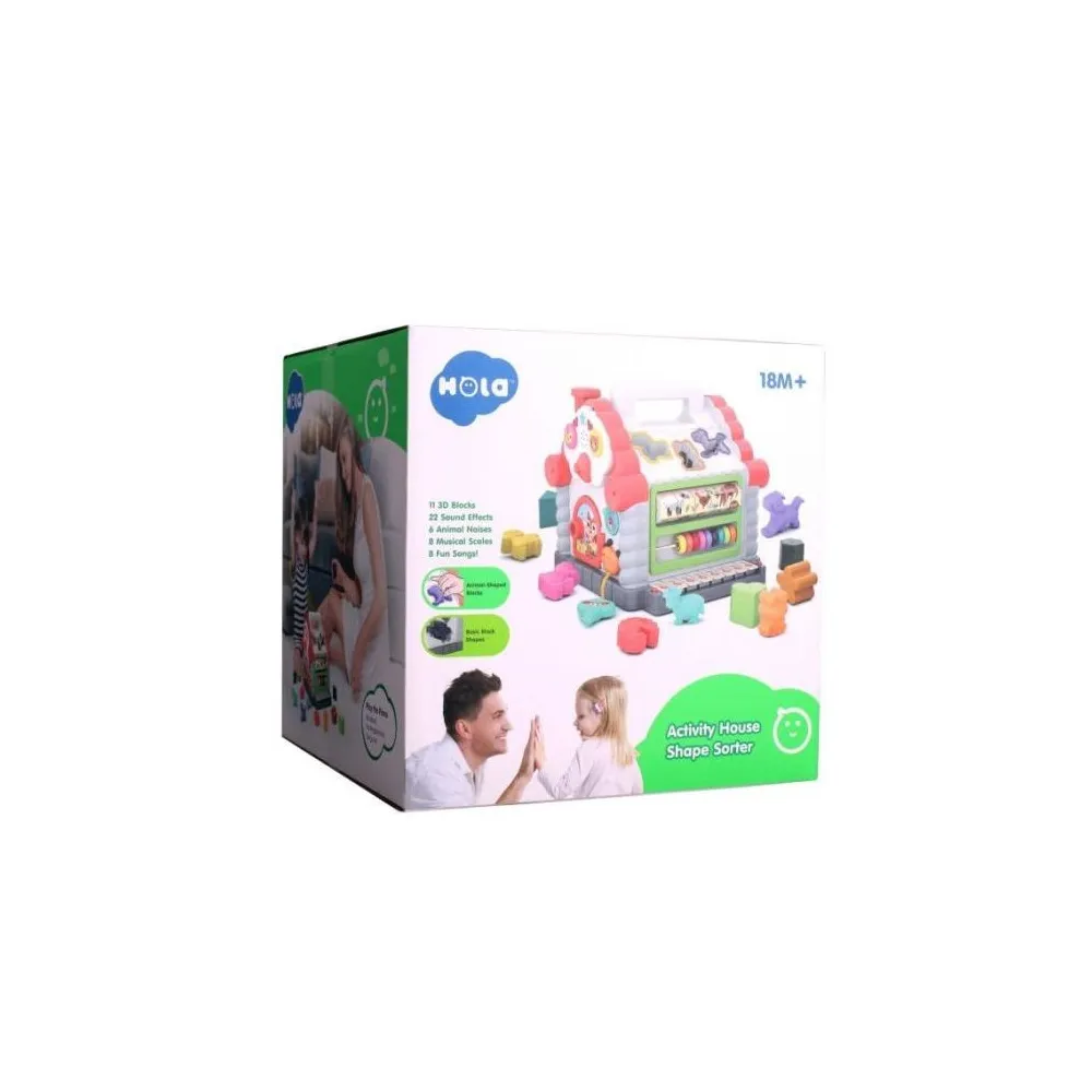 Copilul dumneavoastra poate sa se joace si sa invete alaturi de casuta cu forme, lumini si sunete de la HolaToys. Acesta va oferi copilului dumneavoastra momente pline de distractie si veselie, iar dumneavoastra, privindu-l, zambete nemasurabile. Fiecare din fetele jucariei contine activitati diferite, menite sa dezvolte perceptia vizuala si auditiva si coordonarea dintre maini si ochi a copilului dumneavoastra. Copilul poate umple casuta cu diversele forme, sa o goleasca si sa inceapa din nou.