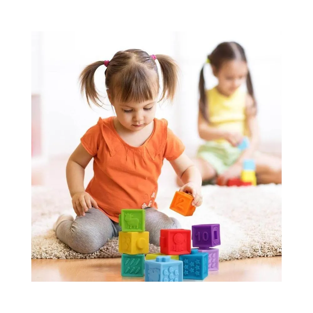 Set 9 cuburi de construit din silicon pentru bebe