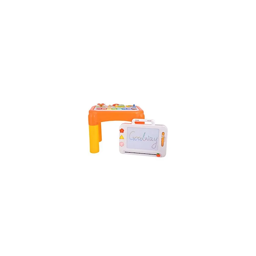 Indiferent ca cel mic merge in picioare sau de-a busilea, Masuta interactiva Distractie-Studiu va creste o data cu el. Panoul central este detasabil pentru a face mai mult spatiu de creatie celui mic, sau poate fi chiar atasat la marginea masutei.