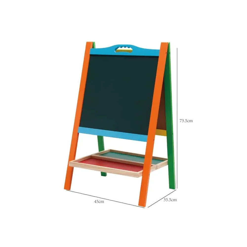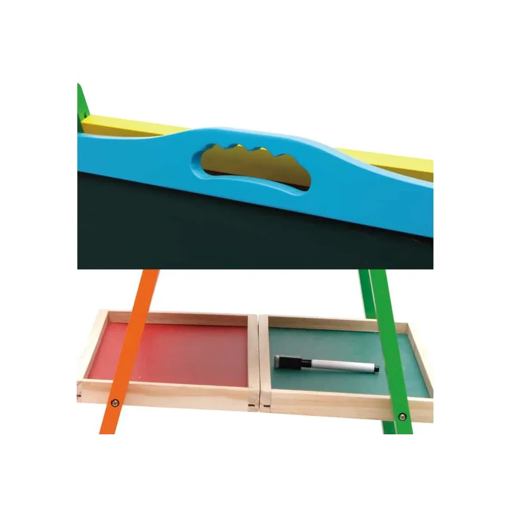 Este educativa si distractiva putand fi folosita in multe activitati ale celui mic, copilul poate desena cu creta pe partea neagra, poate desena, scrie cu markerul pentru tabla magnetica pe partea alba, poate sa se joace cu piese magnetice ce adera de suprafata alba.