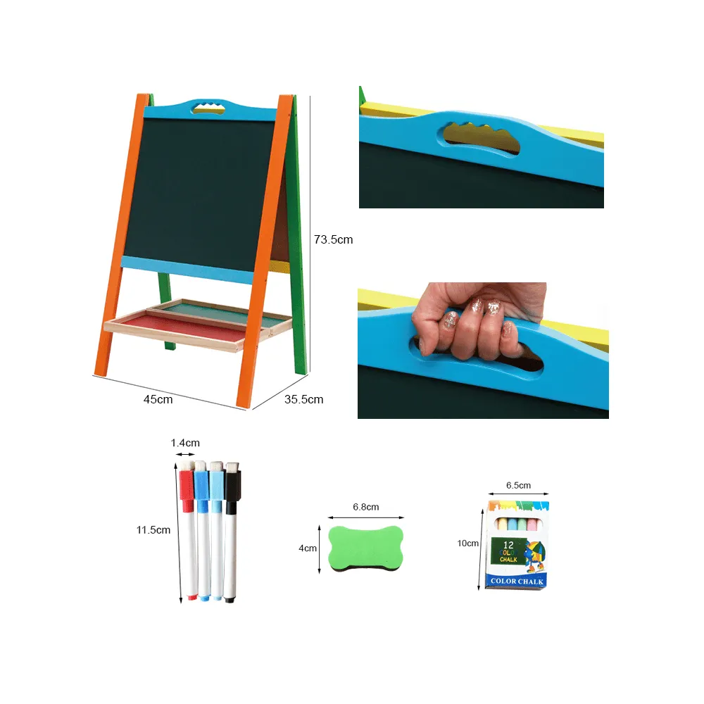 Tabla educativa multifunctionala cu accesorii pliabila, cu picioare, maner si doua fete.