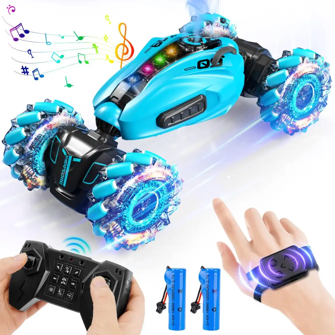 Masina ce poate fi controlata prin miscarile mainii in aer: cea mai noua masina in miniatura cu doua fete, pe patru roti puternice potrivite pentru catarare ori cascadorii, prevazuta cu efecte speciale. Actiunea si distractia sunt nelimitate, oferind copilului o experienta minunata de operare si efecte vizuale.
